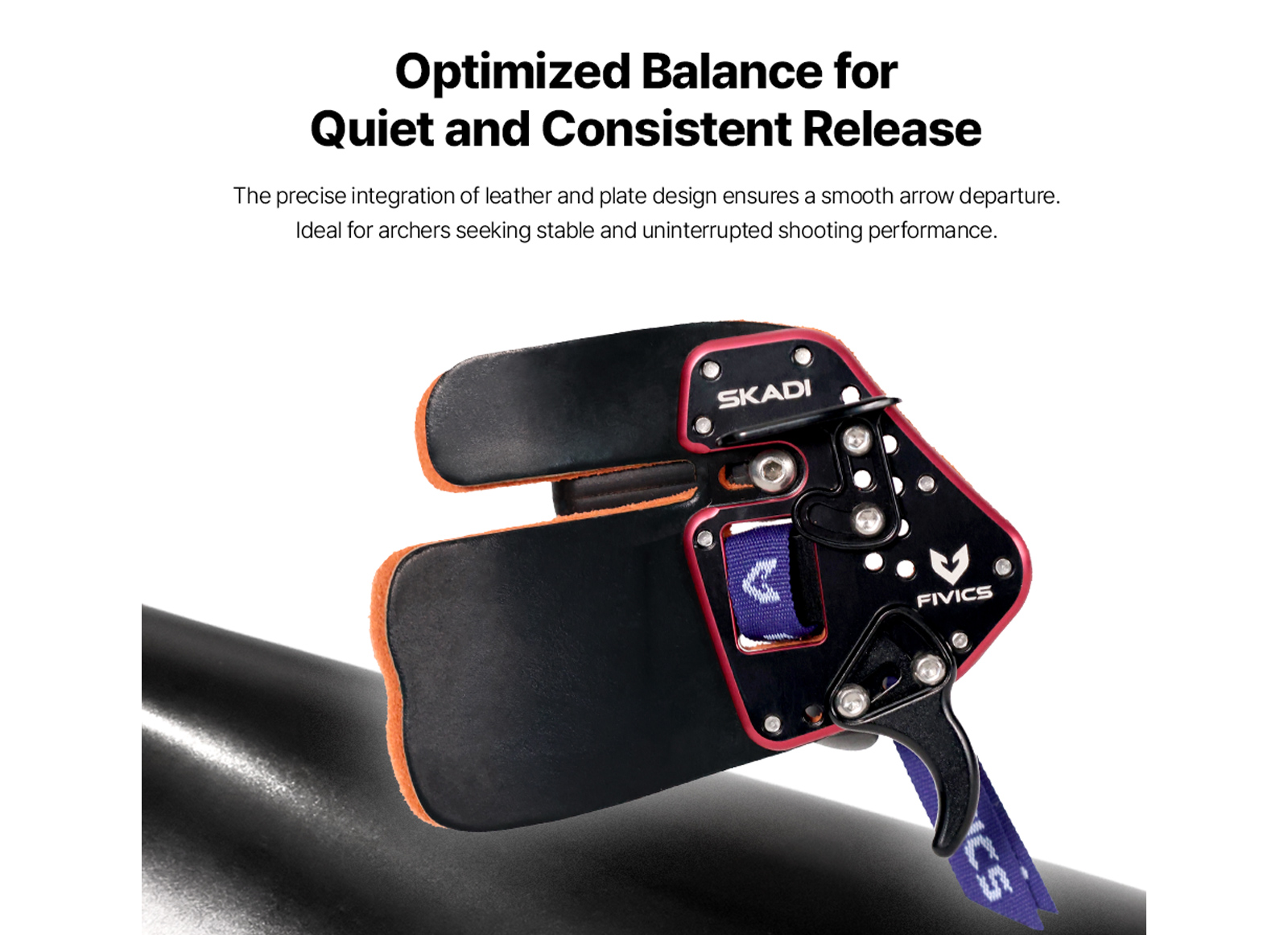The Skadi tab represents Fivics' latest evolution in precision recurve bows. It was designed with a particular focus on hand stability and consistent anchor point.