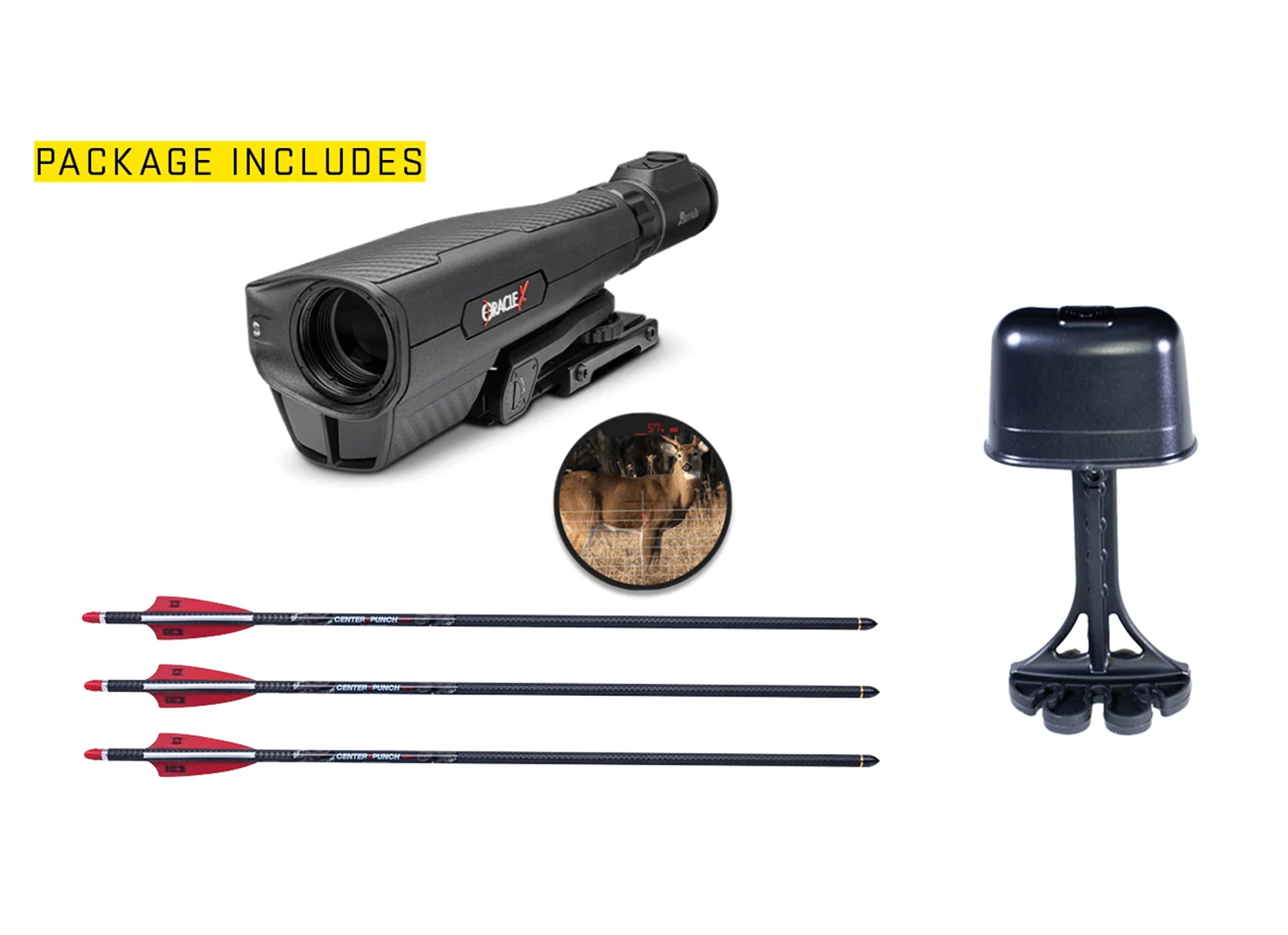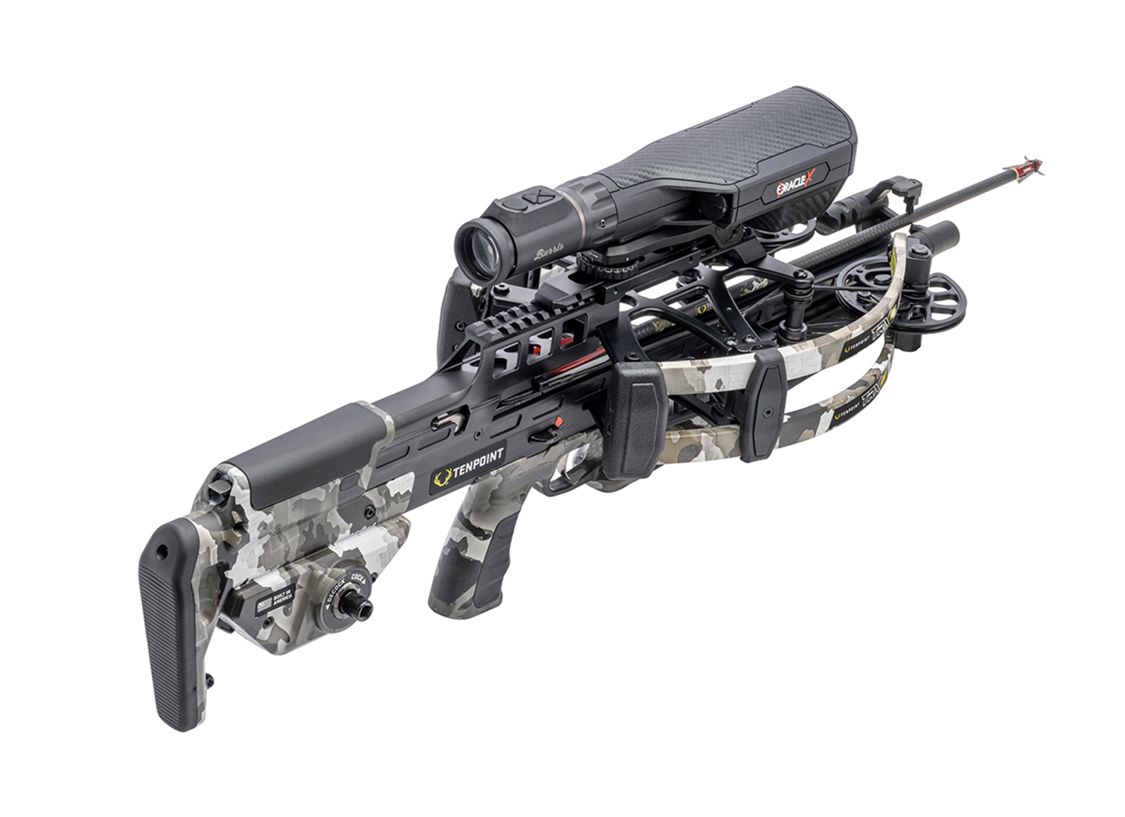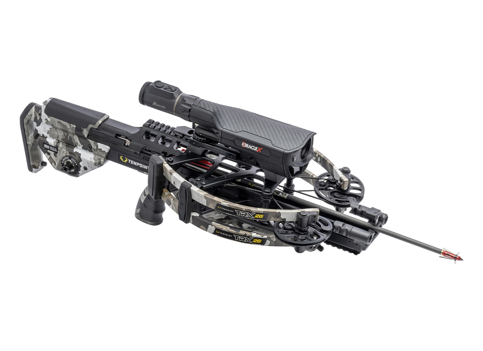Dotata dell'ottica con telemetro Burris® Oracle X™, la TRX 26 è una balestra con telemetro e flettenti inversi compatta e leggera. Con una velocità di tiro di 460 FPS, questa balestra rail-less è costruita con un ingombro ridotto e un profilo basso, con soli 26.5' di lunghezza e 5.75' di larghezza, offrendoti la libertà e la mobilità necessarie per andare più lontano, senza rinunciare al materiale di supporto o all'attrezzatura necessaria per il tiro, e offrendoti una maggiore copertura di tiro riducendo il rischio di contatto delle camme coo rami nel treestand o nel tiro a terra.