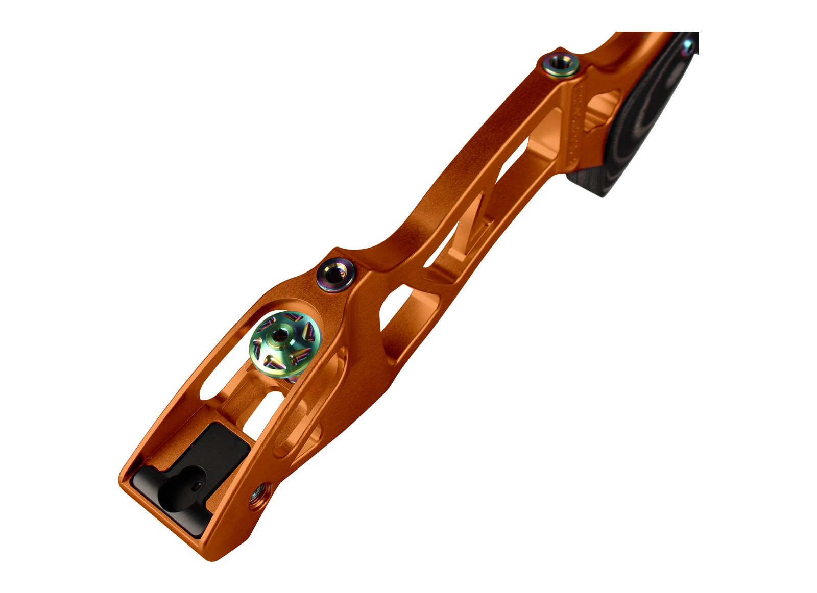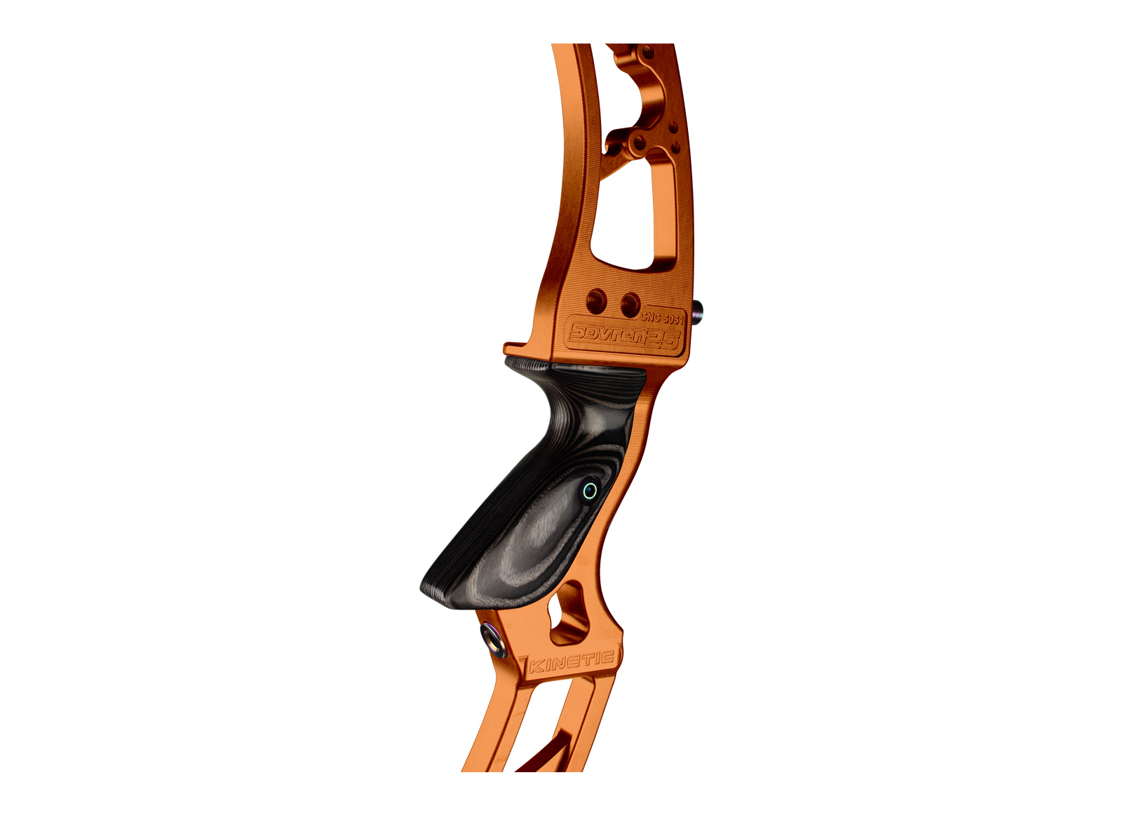 Riser di alto livello di Kinetic a un prezzo medio. Realizzato da un solido blocco di alluminio CNC 6061-T651. Le fresature a coste conferiscono al riser un aspetto superiore. Include sistema di allineamento dei flettenti e impugnatura in legno. Ottimo rapporto qualità-prezzo. Peso per arco nudo opzionale