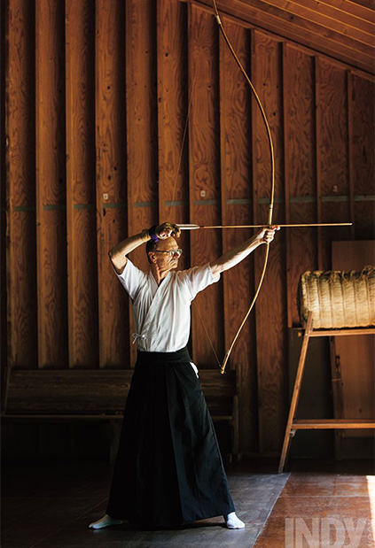 Come ogni pratica legata alla filosofia giapponese il Kyudo è attenzione ai dettagli, ricerca di equilibrio, di pieni e vuoti. Così l’arciere deve imparare prima di tutto il modo di camminare, di girarsi, di inginocchiarsi, dapprima a corpo libero, poi portando con sé arco e frecce.