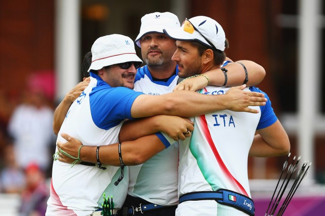 Il team di arcieri italiani costituito da Marco Galiazzo, Michele Frangilli e Mauro Nespoli.