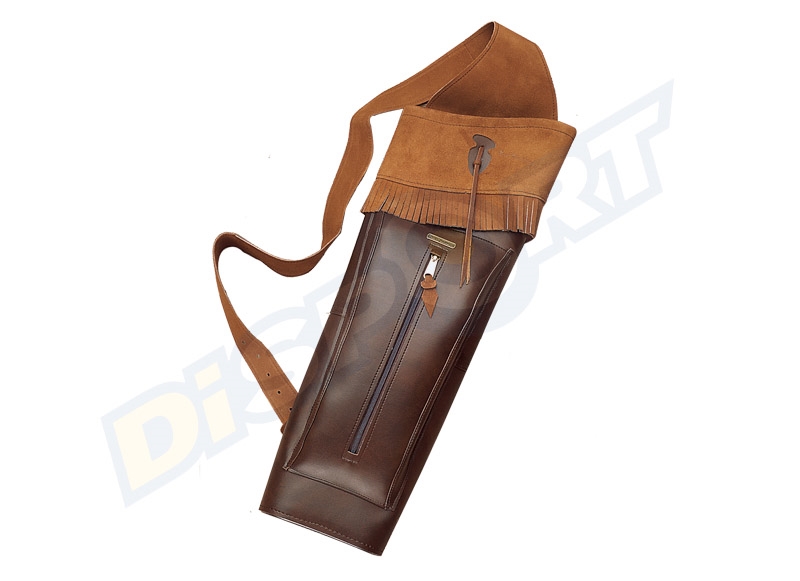 70 gauge leather grained brown vinyl construction with brown suede leather trim. 22'' long with 8'' x 2 1/2'' opening. 1'' foam bottom insert. Large zipper accessory pocket. Two compartment with divider lace. Adjustable 1 172'' shoulder strap.