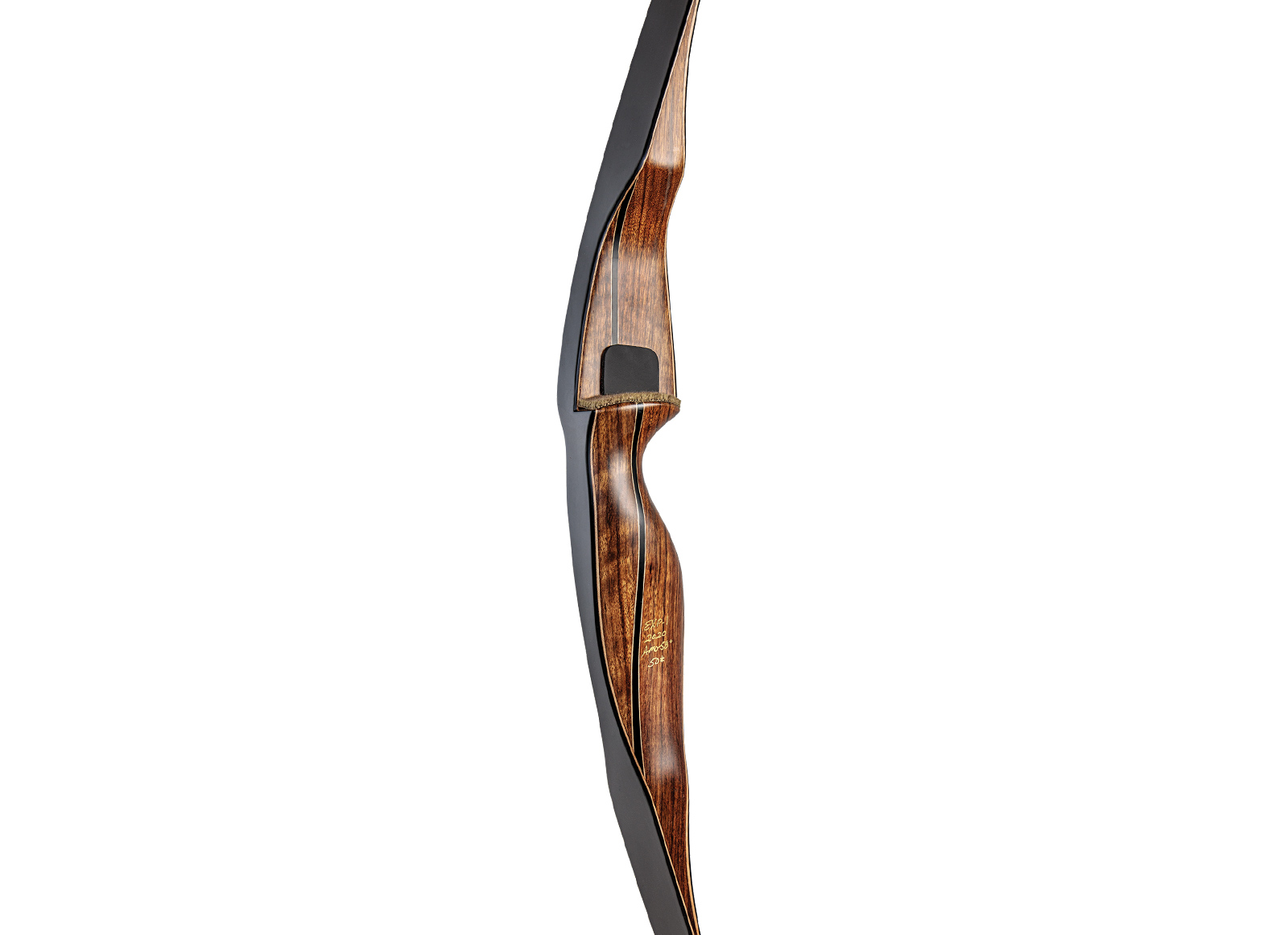 The Original Super Grizzly was available in the mid-1970s and was reintroduced in 2011 to the delight of archers who prefer a smooth shooting feel. The Super Grizzly's performance is based, in part, on two layers of lamination in the limbs, creating a better feeling, better shooting bow without hand shock. Construction: Double layer maple laminate limbs backed and faced with high-stringth black fiberglass; Crowned, cut-on center arrow shelf with leather side plate and bear hair arrow rest; Dynaflight 97 Flemish Twist string included; Reinforced tip for fast flight use. Color Shedua With Black Stripe.
