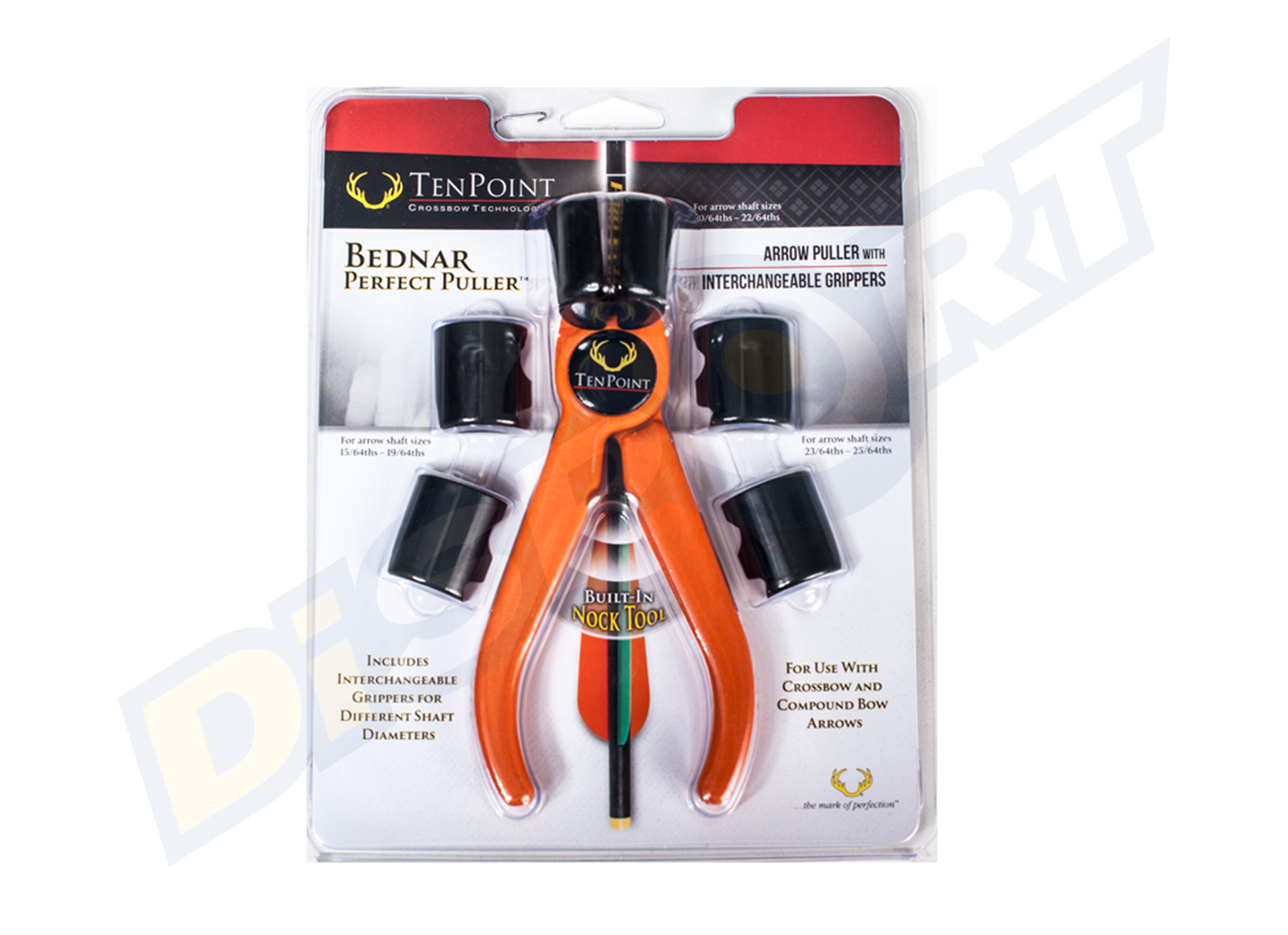 The Bednar Perfect Puller is designed to pull arrows from high density targets. Includes three interchangeable grippers sized to fit different shaft diameters of both crossbow and compound arrows. In addition, the hunter orange handles are notched to create a built-in nock tool.