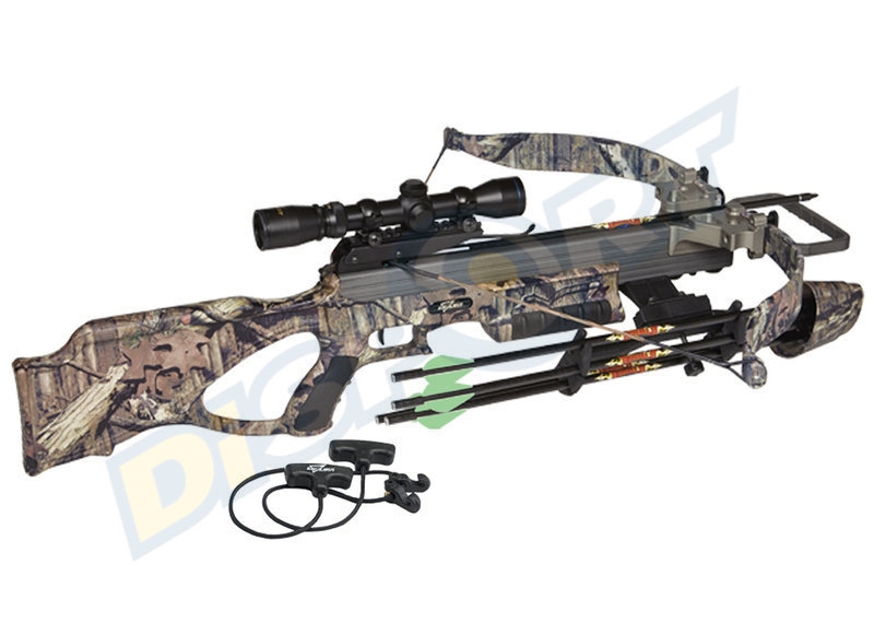 However, due to its mere 10.9-inch powerstroke it’s even easier to cock, weighs an astonishing 5.1 pounds, and comes fully dressed in Mossy Oak’s Breakup Infinity Camouflage. The Matrix 310 is available only as a package, which also features: Excalibur R.E.D.S systems; Multiplex scope; A four-arrow quiver with bracket; four Diablo arrows; 150-grain field points. Velocity 310 fps; draw weight 200 lbs; mass weight 5.1 lbs; overall length 33.9''.