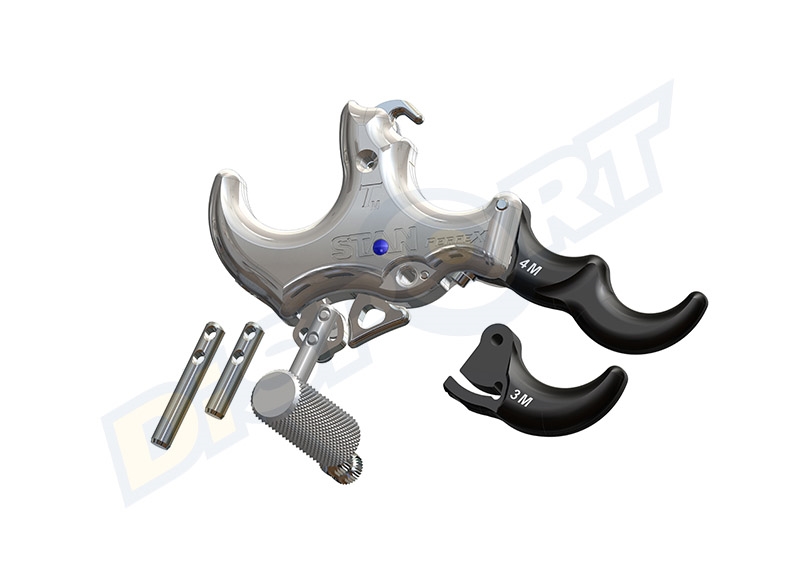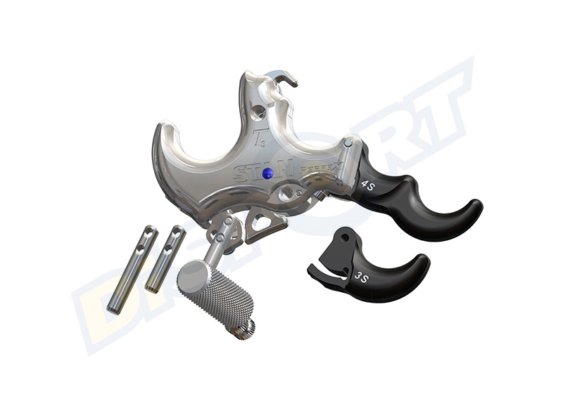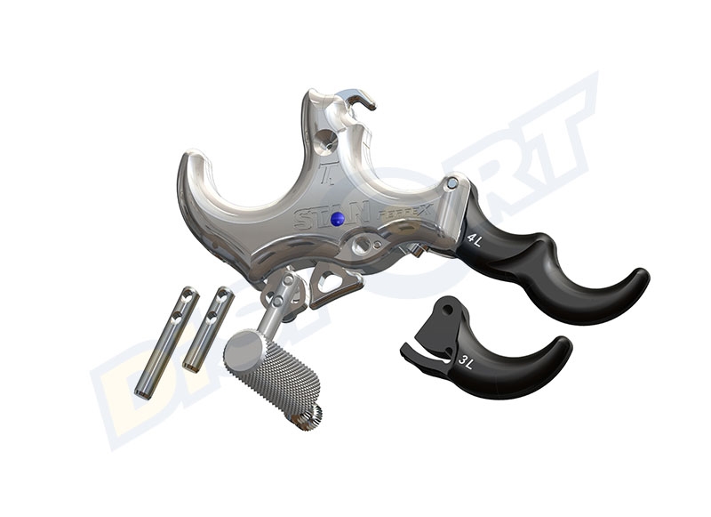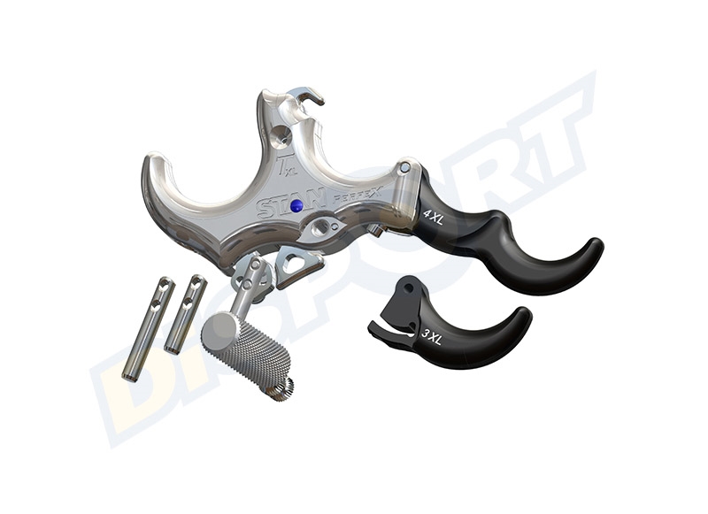 Highly customisable design with interchangable finger peices to get the best fit in your hand. Comes with three and four finger modules included. Pivoting finger modules allow customisable angle. Three trigger post lengths for a clean and comfortable execution. Features Stan's popular trainer lock system for safe practice. Short neck design to maximise drawlegth.