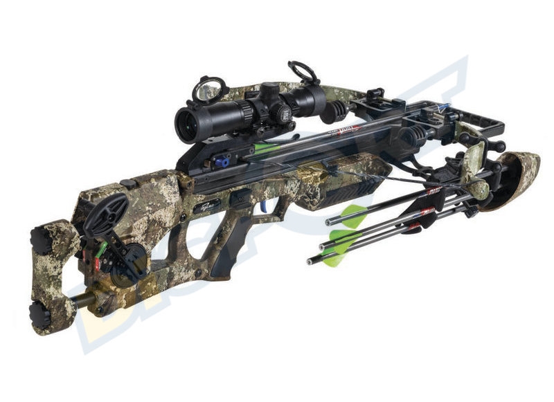 Recurve crossbow Excalibur Assassin 360 Strata Tact-Zone LSP, Impressive accuracy, Package includes: TactZone scope with 30mm rings, 4 bolt quiver, 4x quill bolts with 100grain points, fail-safe strap and stirrup. High performance model.