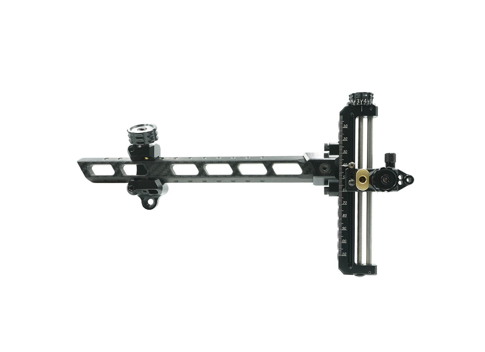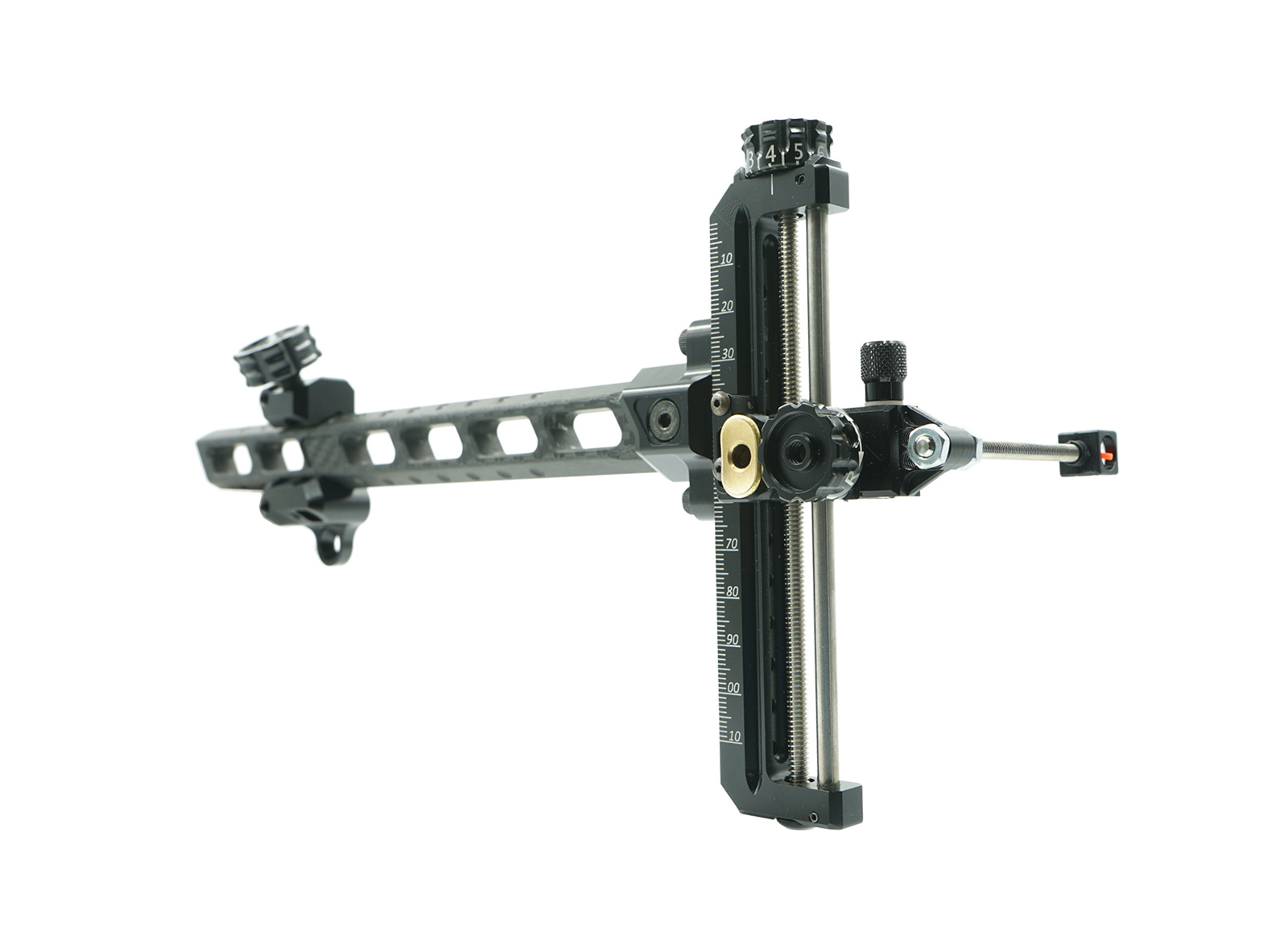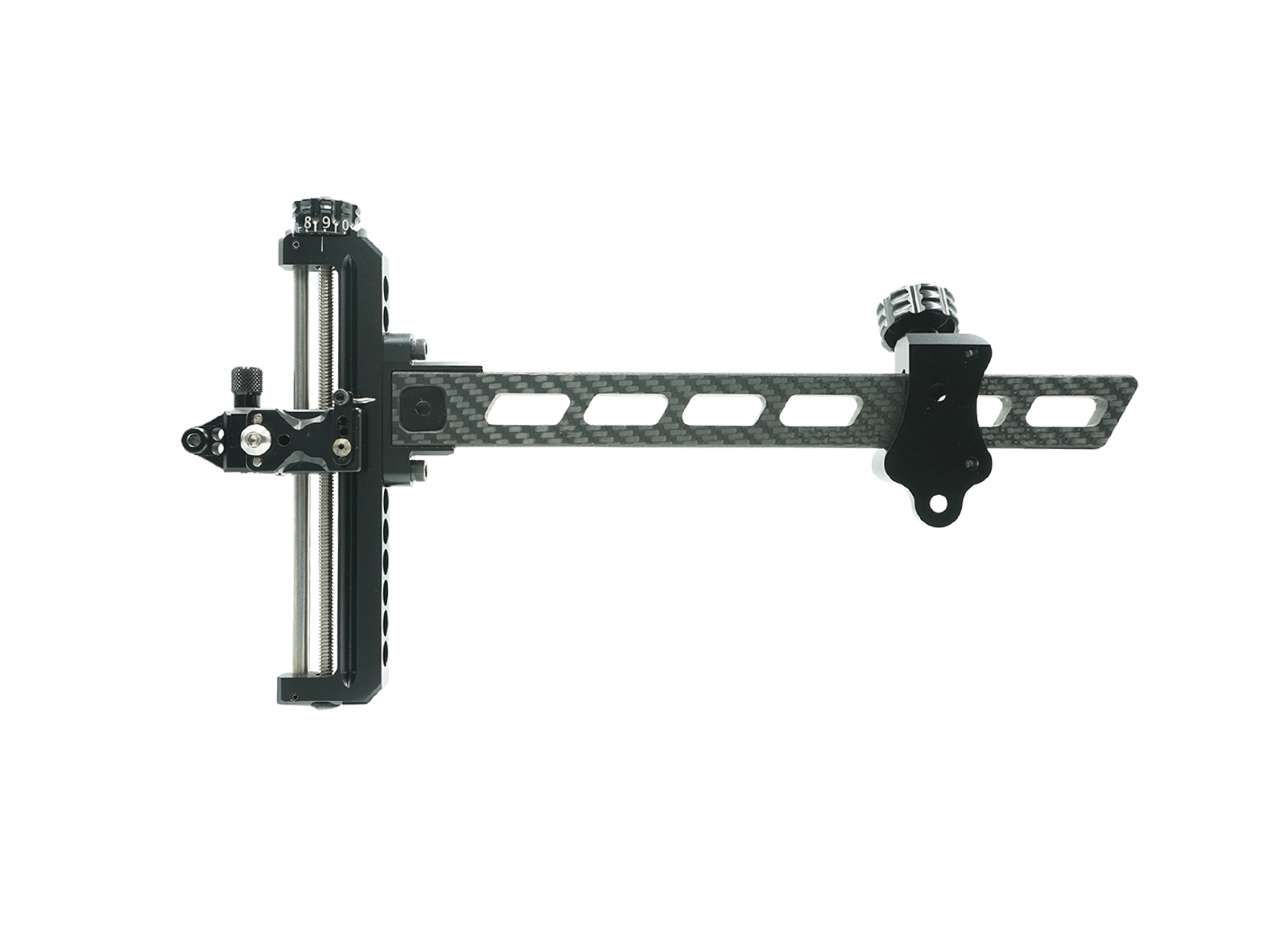 Recurve sight from Sure-Loc. Ultra lightweight design. 9'' carbon fiber extension bar. Precision machined 5.5” vertical elevation track with laser etched scale. Quick-adjust vertical elevation. Zero backlash windage thread system. Diottra NON inclusa.