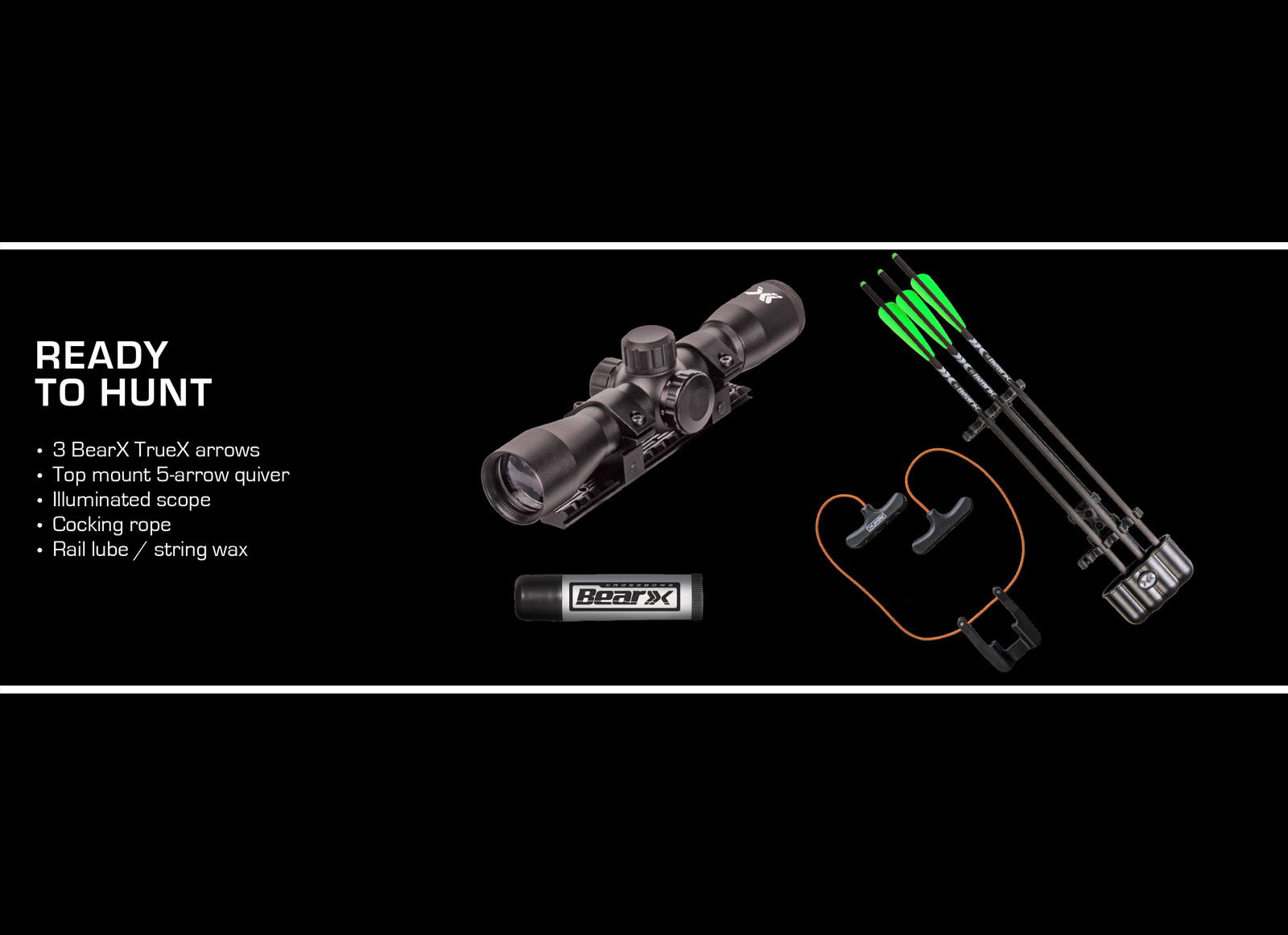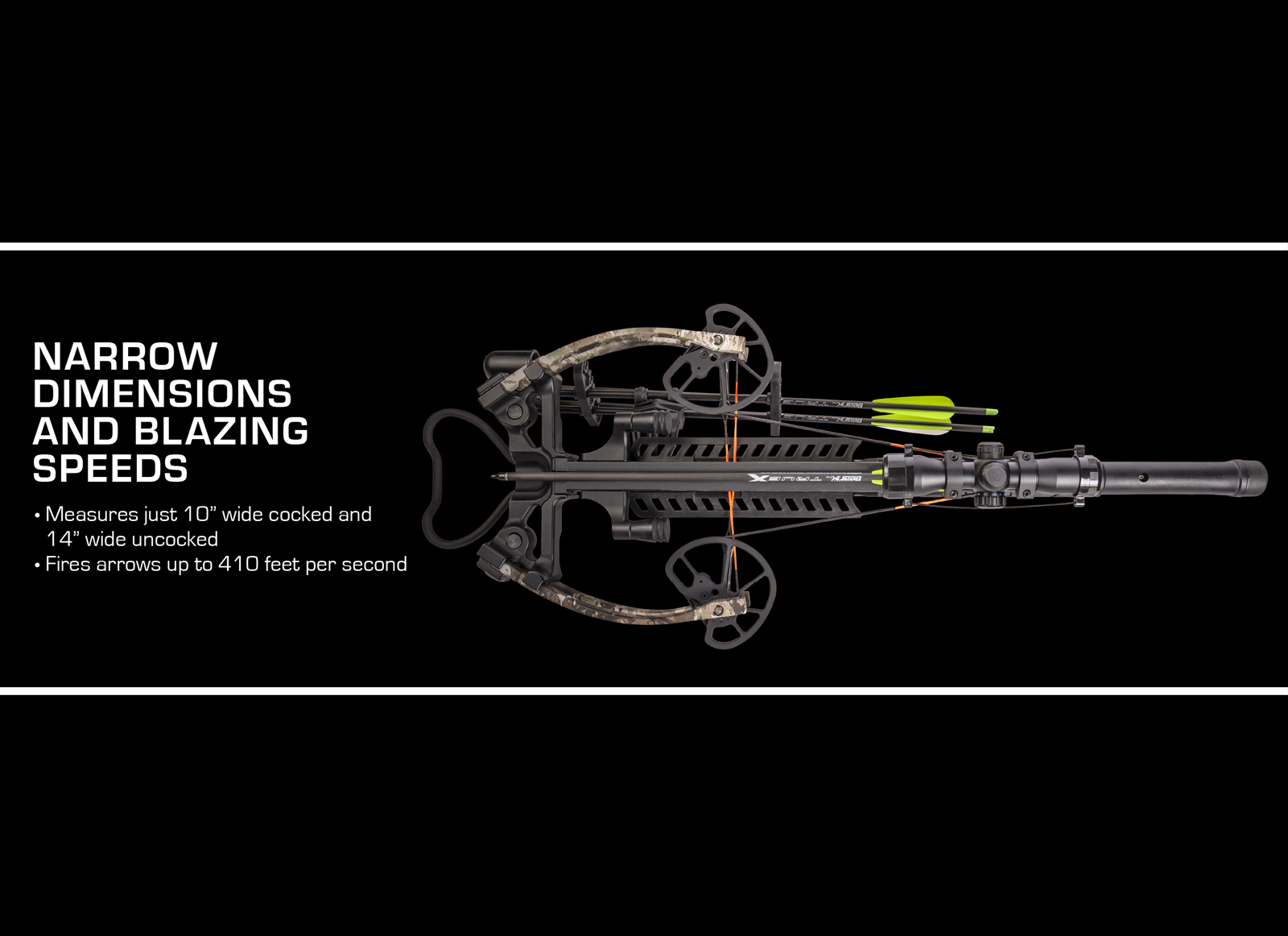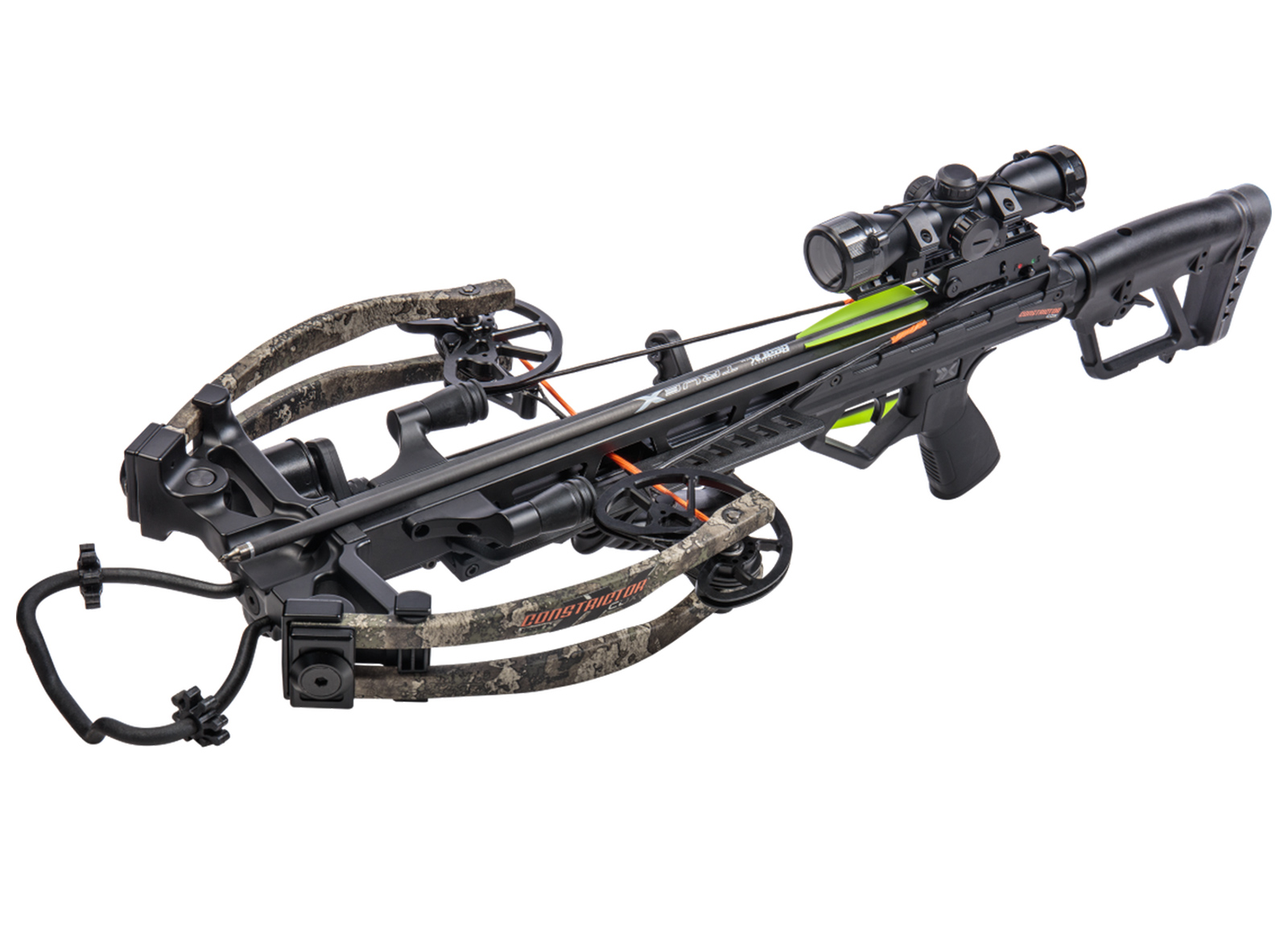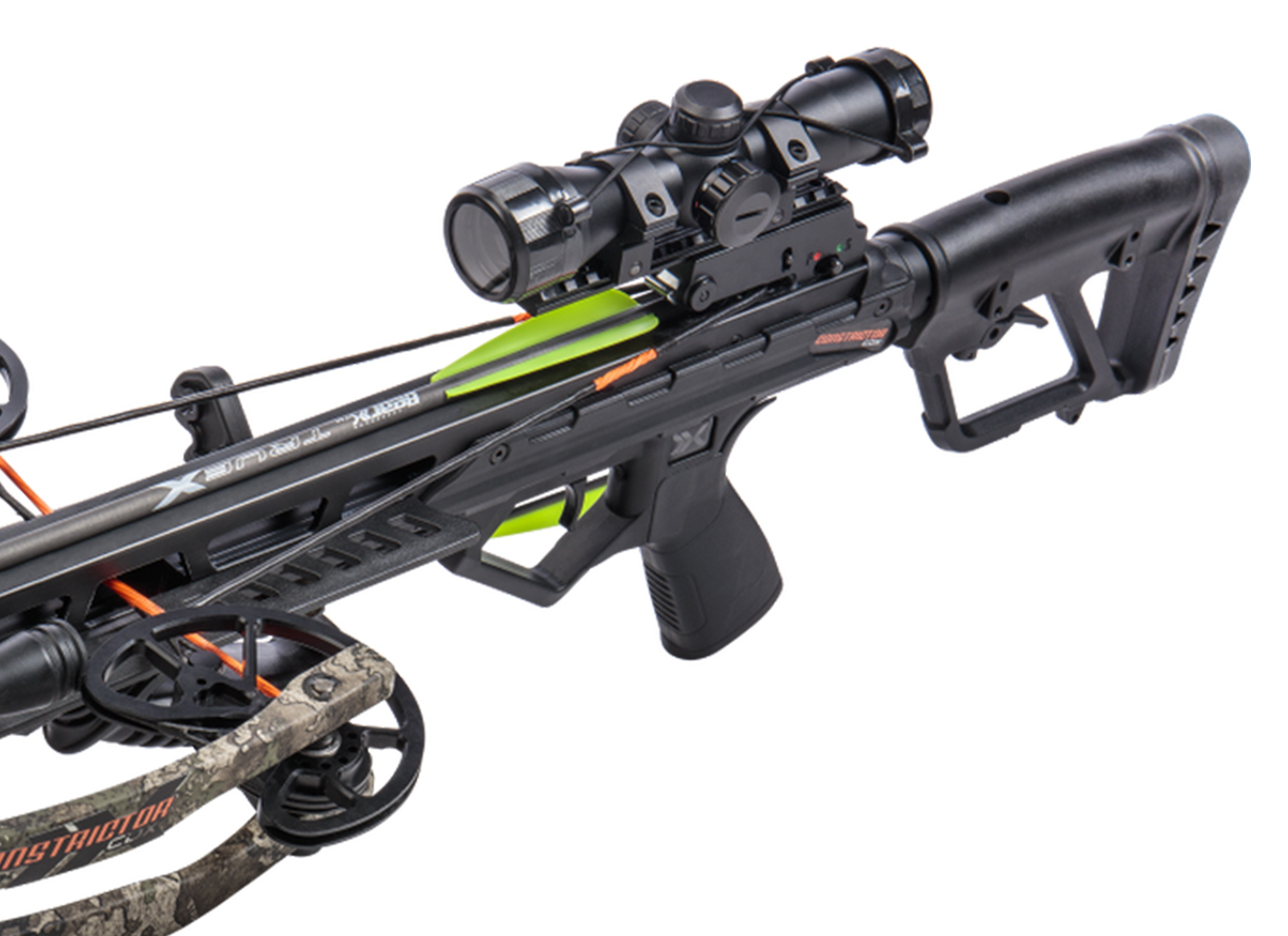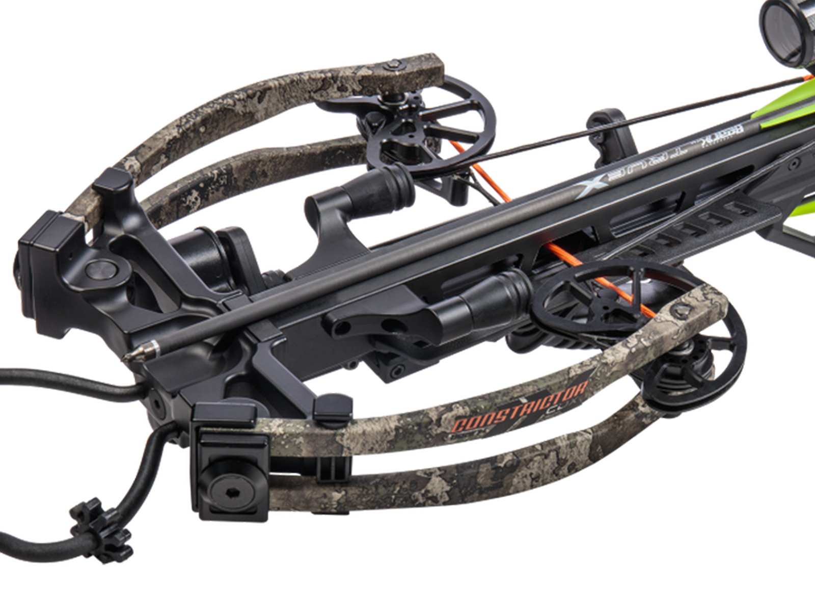 The new Bear X Constrictor CDX Crossbow was make for crossbow hunters in tight quarters, the Constrictor CDX’s narrow dimensions and blazing speeds of 410 fps and 190lbs deliver lethal results without draining your wallet. Living up to its name, the Constrictor CDX measures a mere 10” wide cocked and 14” wide uncocked. This ready-to-hunt crossbow package includes 3 Bear X TrueX bolts, illuminated scope, 4-arrow quiver, cocking rope, and rail lube / string wax.