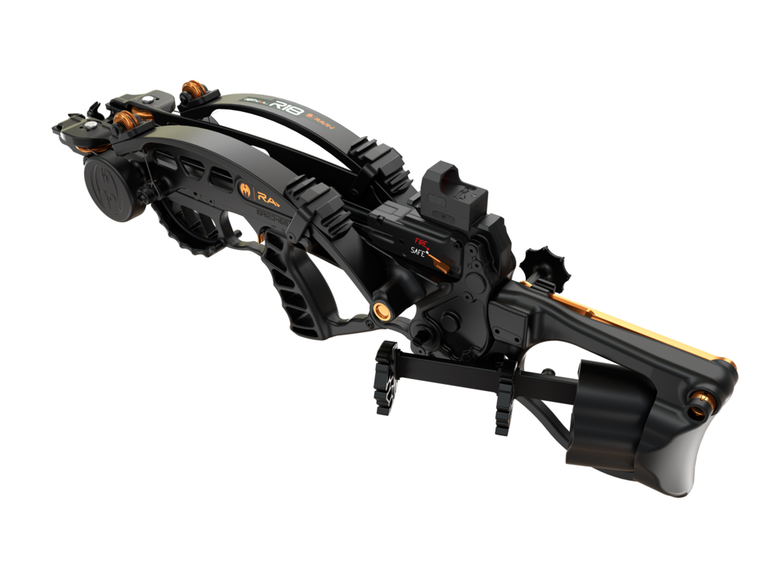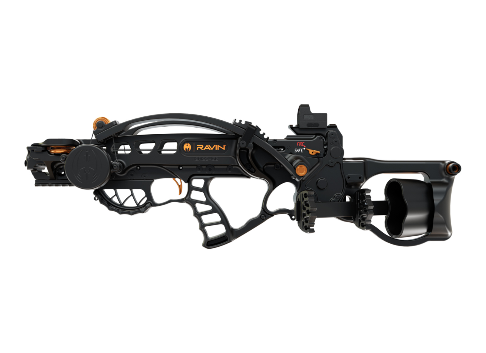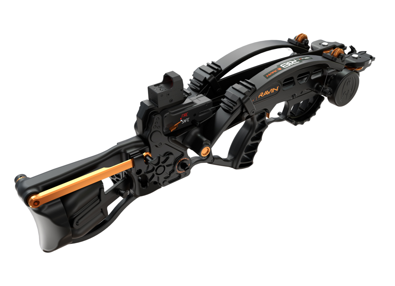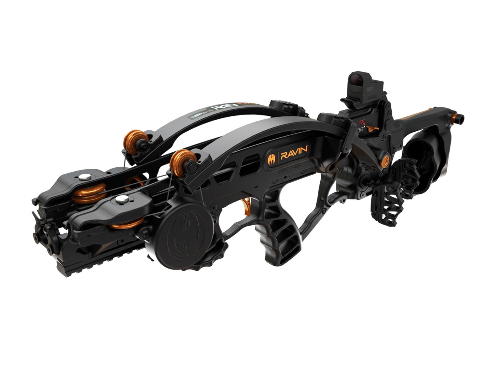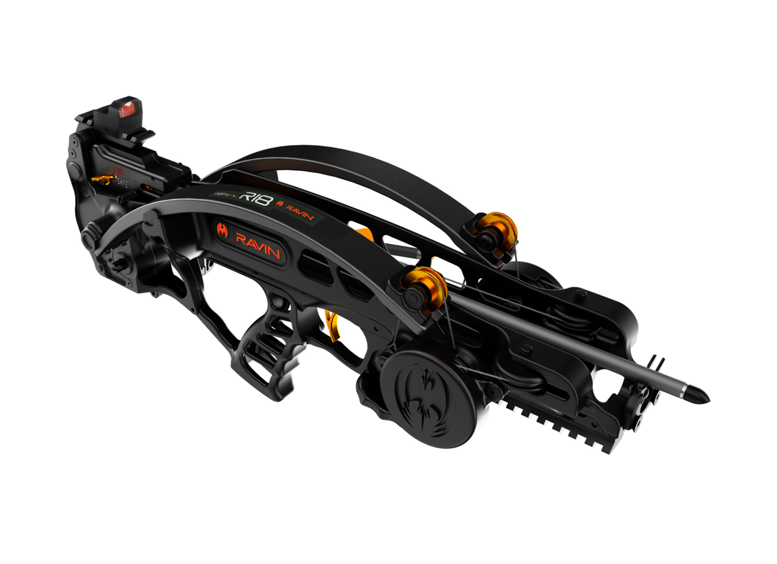 Utilizing the new proprietary VertiCoil Cam System, the R18 is the shortest Ravin ever created at just 25 inches in length. The VertiCoil Cam System rotates the ultra-small cams 720 degrees, coiling the strings and cables around the cam and cam axle allowing an axle-to-axle height of just 1.3 inches cocked or 4.1 inches when uncocked, with a static overall width of 4.75”. The R18 is a takedown style crossbow with limbs that expand vertically, shooting 330 feet per second. The R18 includes a detachable stock with an integrated removable quiver system, making the length a short 18″ with the stock removed. The unique 6-pound crossbow features the new Ravin 3-Dot Reflex Sight for easy target acquisition, and includes the Ravin built-in cocking mechanism, allowing for an easy draw.