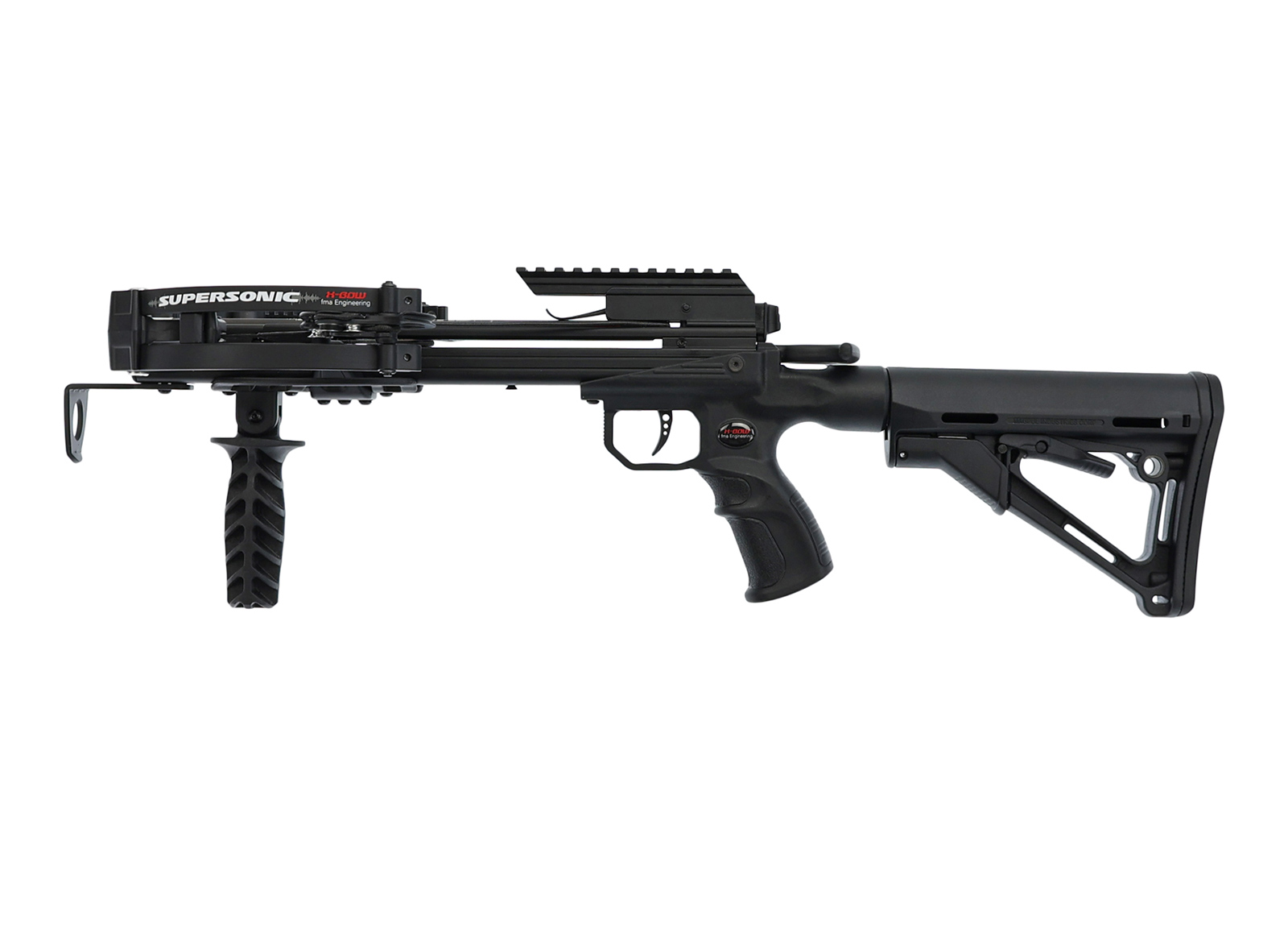 FMA X-BOW now equips the Supersonic with an adjustable M4 style stock. This comes from the US manufacturer Magpul and offers excellent quality. The material is a high-quality, glass-fibre reinforced and heat-resistant plastic with a non-slip surface. With the new, extended stock in the so-called A-frame design, the Supersonic fits even better in the hand and can be optimally adjusted to any shooter.