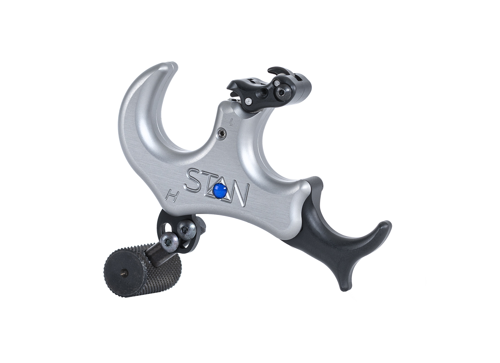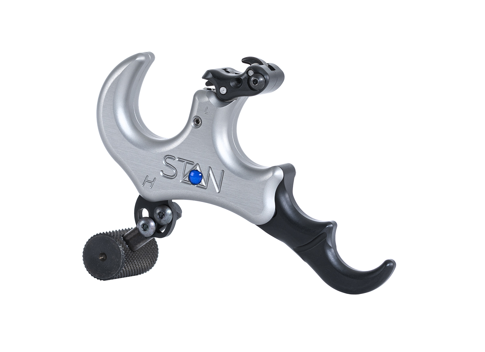 Stan Onnex Rotation (also called Stan Onnex Hinge Back Tension ) is a Back Tesion release that is activated thanks to the rotation and back tension movement. Precise adjustment with micrometrically adjustable movements, easy to use thanks to the safety to be pressed during traction to avoid any accidental release of the arrow. Equipped with bezel with medium clicker or '' no clicker '', adjustable extension for the third and fourth vane gers, standard or wide button and extension for classic or short button. This aluminum version has a classic weight, an ideal choice for those looking for an intermediate weight in rotating releases. Available in Gray or Green color.