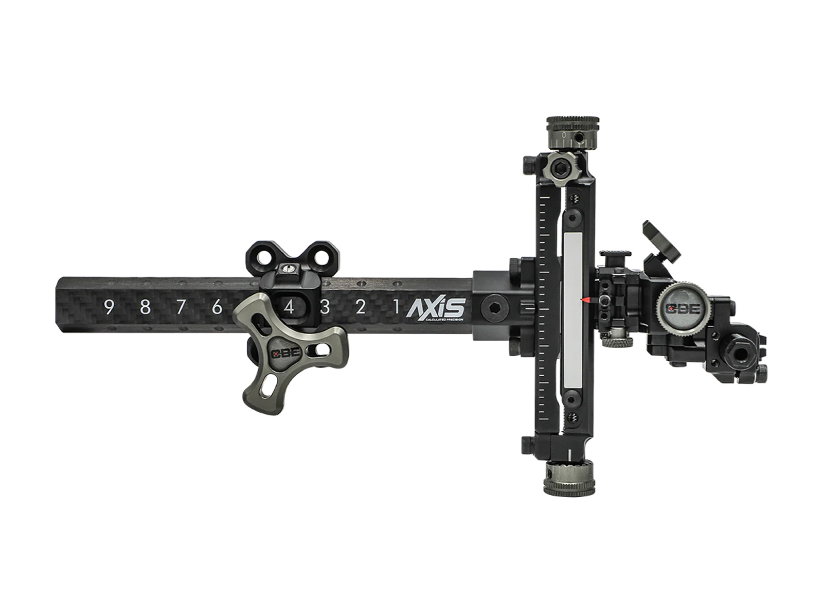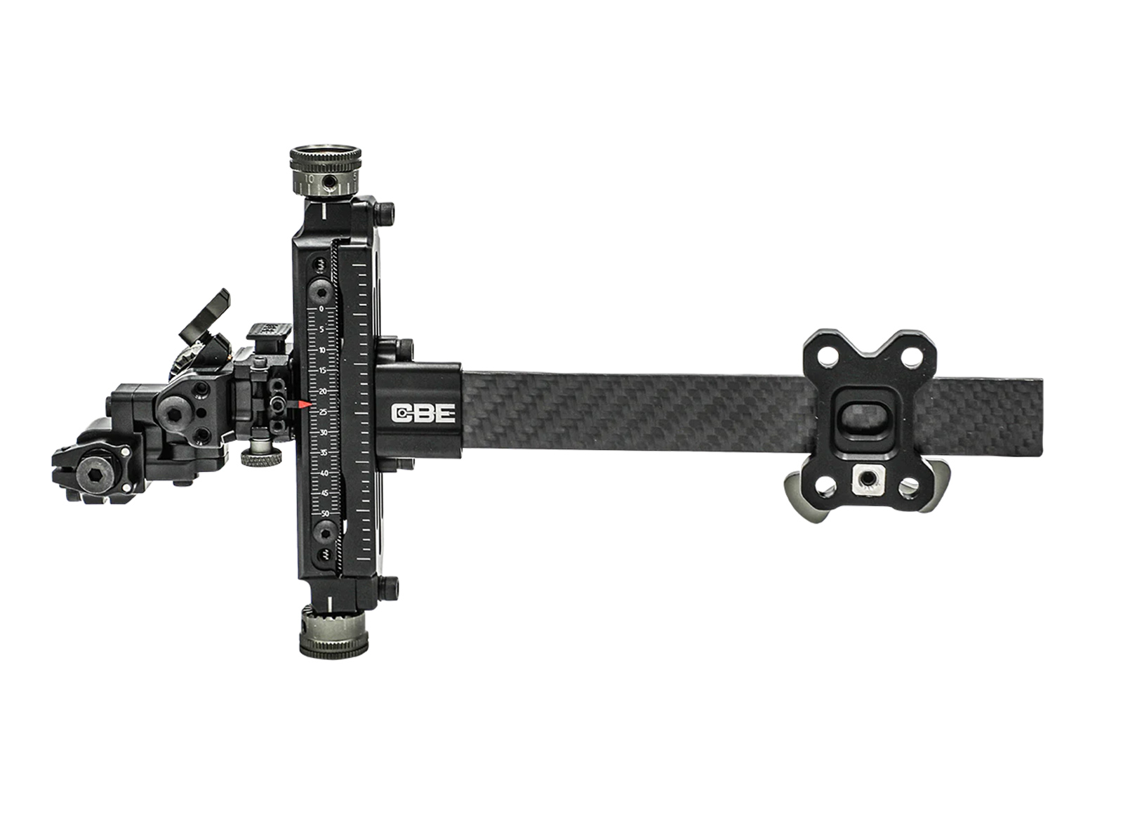 We are thrilled to announce the release of the latest target sight platform from Custom Bow Equipment. The new dovetail extension is extremely reliable and securely locked onto the riser with a mount that fully encases the carbon bar for maximum stiffness and safety. The second-axis adjustment is independent, which enables the vertical bar's elevation changes without affecting the second-axis setting. With the Rapid Drive adjustment and elevation lock, the sight setting remains constant, and elevation adjustments can be made quickly, making it perfect for Field & 3D courses. Additionally, the fine .002' per click elevation and windage adjustments make it a top choice for podium-worthy performances.