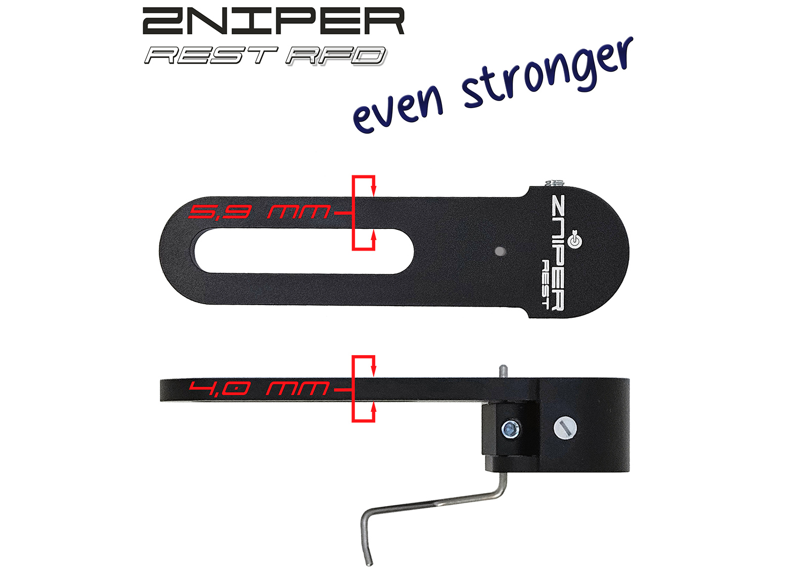The new RFD (Reinforced) version of the ZNIPER rest arrow rest is even stronger and more robust and can withstand the high-frequency vibrations of modern high-performance bows over a long term.