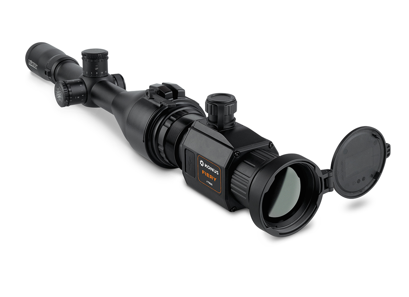 This highly professional instrument can be used as a compact monocular for handheld observation, or as a riflescope, or if attached to a traditional scope, it will add the advantages of thermal vision to your riflescope. The FIERY CLIP ON has a zoom magnification of 2.1x-16.8x.