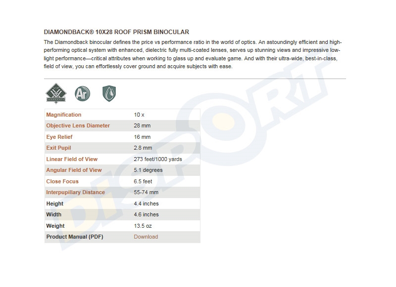VORTEX OPTICS BINOCOLO - DIAMONDBACK 10x28 DB-201