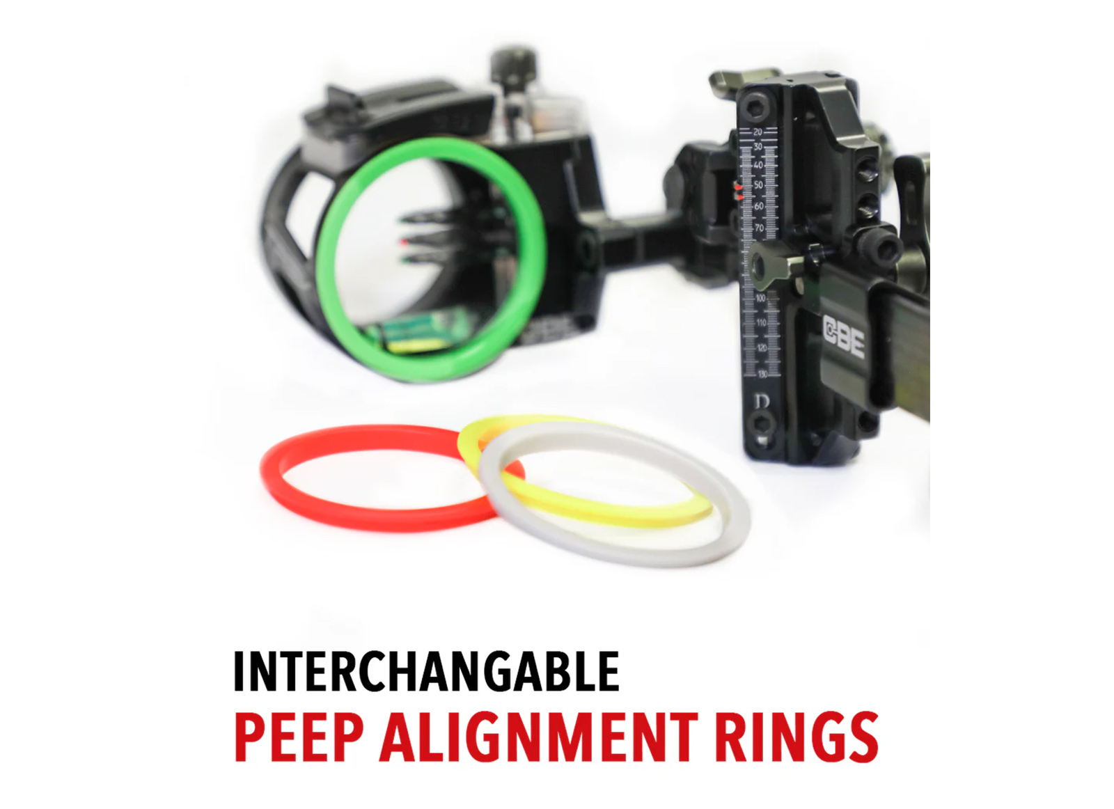 There isn’t a distance or scenario this sight can’t handle with the ability to set up two floating pins with multiple indicator pointers. Micro-adjustable windage and elevation with a dead stop for your top pin and rapid drive for fast adjustment makes set up easy! Fine tune your sight at 30 yards and then at 60 yards, once completed simply affix one of the 14 laser engraved aluminum sight tapes to ensure accuracy at any distance in between. Ensure customizable shot acquisition and proper lighting with the interchangeable peep alignment rings and rheostat light included.