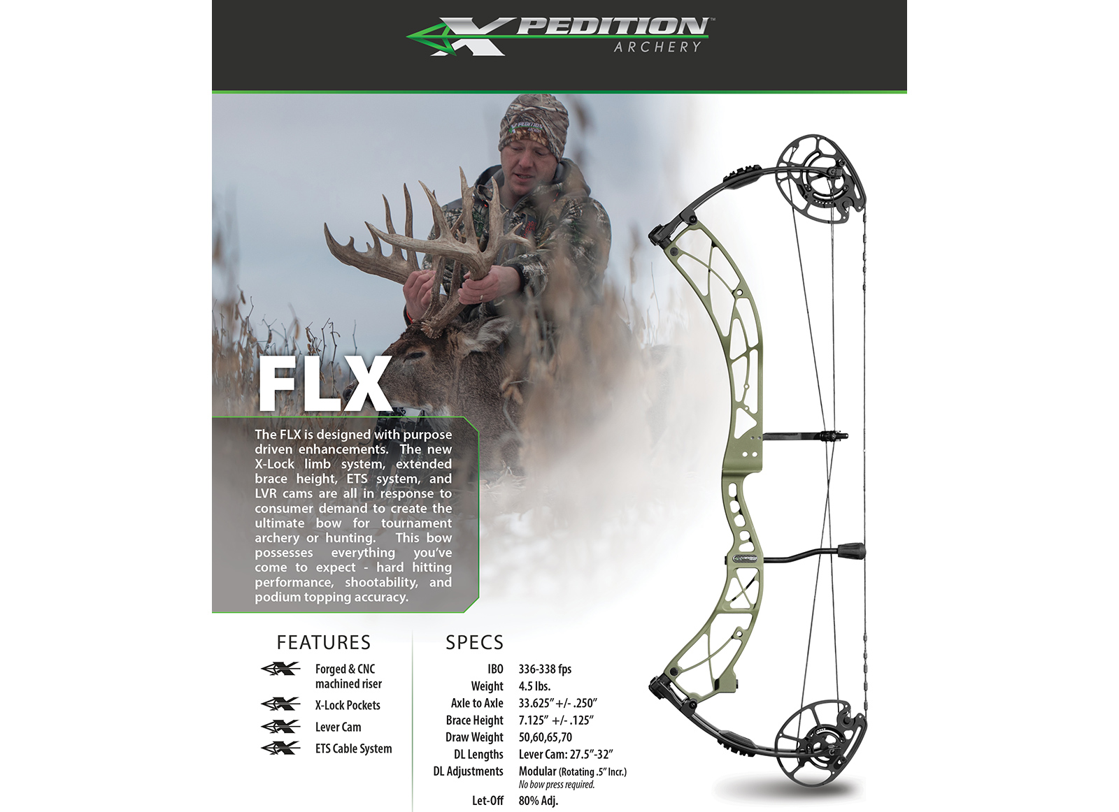 The FLX is designed with purpose driven enhancements. The new X-Lock limb system, extended brace height, ETS system, and LVR cams are all in response to consumer demand to create the ultimate bow for tournament archery or hunting. This bow possesses everything you’ve come to expect – hard hitting performance, shootability, and podium topping accuracy.