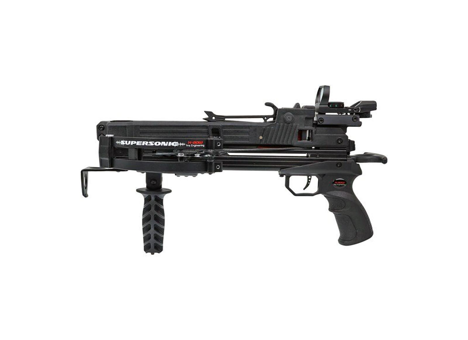 Of course, X-BOW FMA also equips the Supersonic TACTICAL with adjustable shafts in triangle or L-style. With the extended shafts, the Supersonic TACTICAL fits even better in the hand and can be optimally adjusted to every shooter. The material is a high-quality, glass-fibre reinforced and heat-resistant plastic with a non-slip surface.