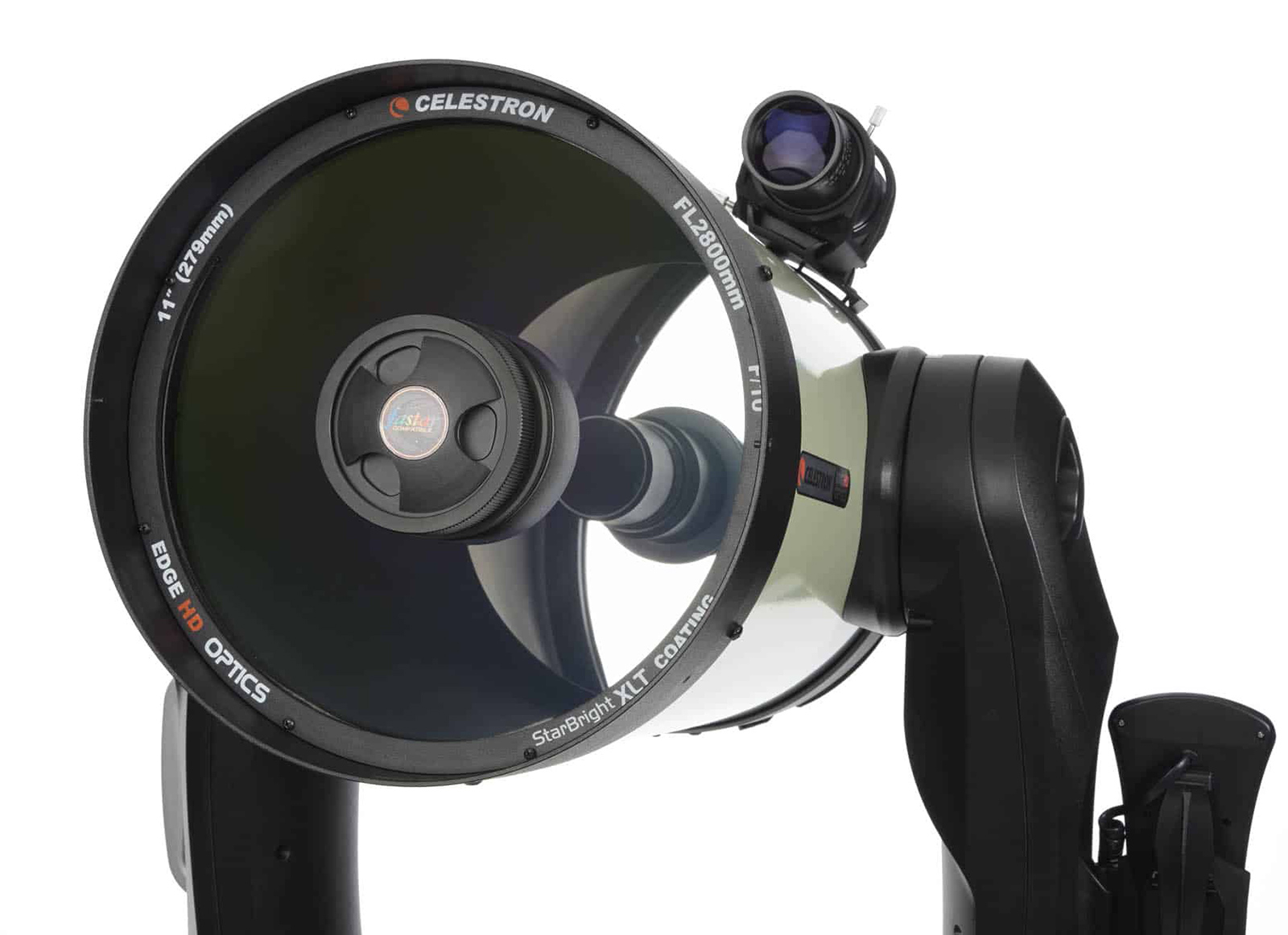 From an optical point of view, the heart of the CPC 1100 DELUXE HD is the C11 Edge HD. The Edge HD optical system combines the very popular compactness of Schmidt-Cassegrains with newly developed optics featuring high de vane ition that allows you to obtain wide-field images with typical astrograph quality. When used visually, Edge HD optics provide pinpoint star images right to the edges even with 2-inch ultra-wide-angle eyepieces. When used for astroimaging, EdgeHD optics produce aberration-free images across the entire field of view of CCD or DSLR cameras, even in Full Frame format. All EdgeHD optics have been designed to produce a very flat focal plane, generating perfectly focused star images right to the very edge of the sensor. The C11 Edge HD is suitable for both visual and photographic use, and has been designed to be modular, being able to work optimally in focal length ranges between 560 and 12000 mm (with optional accessories, also produced by third parties). The XLT optical treatment enhances the brightness of the optics, also offering very high contrast on both planets and deep sky objects. The Edge HD are also designed for the Fastar system and are equipped with a primary mirror blocking system and micro-filtered side openings to speed up the process of achieving thermal equilibrium of the optics.