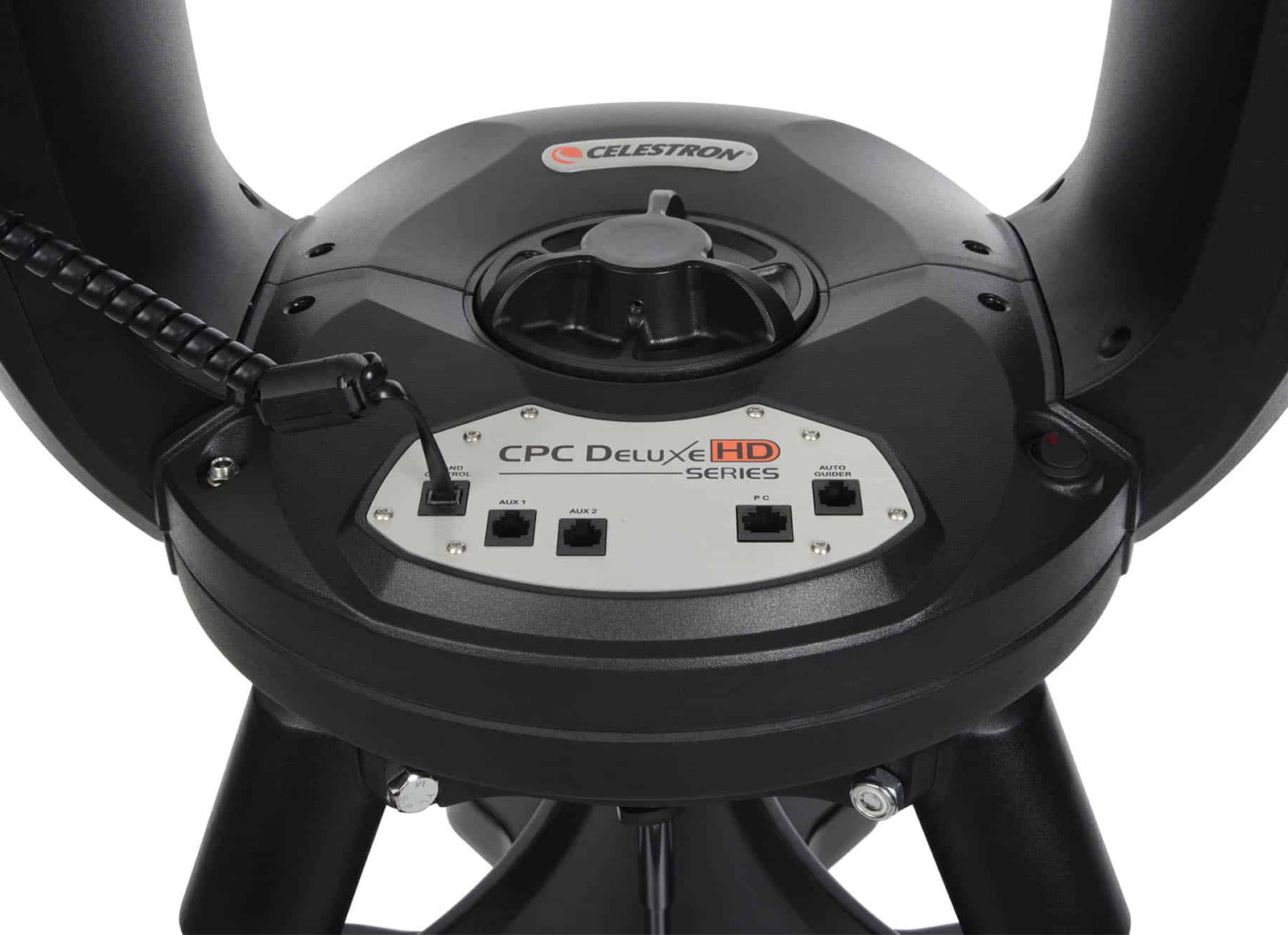 Optical tube and fork – permanently joined – form a very robust system that is easy to transport and mount on the supplied tripod. A CPC DELUXE HD telescope mounts and aligns in minutes with the very fast SkyAlign mode, which does not require recognition of the alignment stars. Celestron CPCs offer a built-in GPS receiver that eliminates the need to manually enter the date, time and exact coordinates of the observation location. The database of 40,000 objects provides the user with an enormous choice of objects to observe or photograph. The fork mount is particularly convenient for astroimaging because it allows very long exposure shots without the problem of meridian inversion. Furthermore, the telescopes of the CPC DELUXE HD series are equipped with redesigned electronics that provide the motors with a stabilized and constant power supply which allows for very precise tracking and high pointing precision even when the instrument is not perfectly balanced.