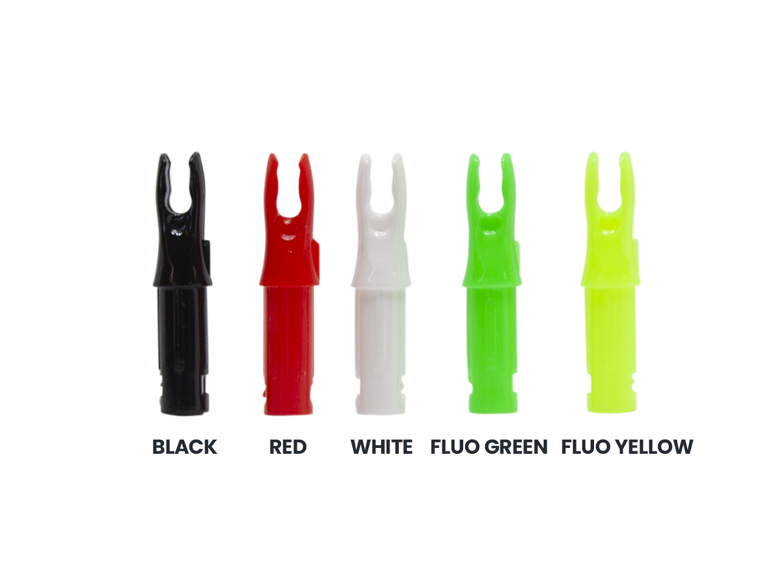 Original Gas Pro 6.2 Eagle nocks, available in several different colors. Large Groove Style for Compound, Traditional Strings with Dacron 14-16 strands, Traditional Strings Fast Flight or 8125 with 16 Strands and large groove serving.
