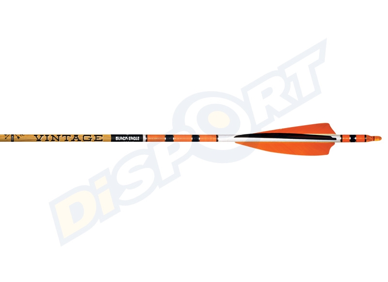 The Black Eagle Arrows Vintage arrow is the first of its kind on the market. Many serious traditional archers, and compound archers, are looking for a high quality wood grain carbon arrow and this is the answer. Each Vintage arrow's cresting is hand painted and quality inspected. The Duracoat wood grain overlay-finish on the shaft allows for refletching and cresting. Vintage arrows are straightness sorted, spine matched, and weight matched to ensure the quality and toughness that you have come to expect. Includes: Black Eagle Arrows Standard Nock - Flo Orange -8 Grains; Aluminum Inserts - 14 Grains;