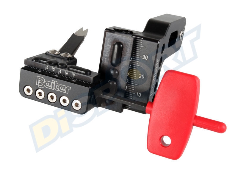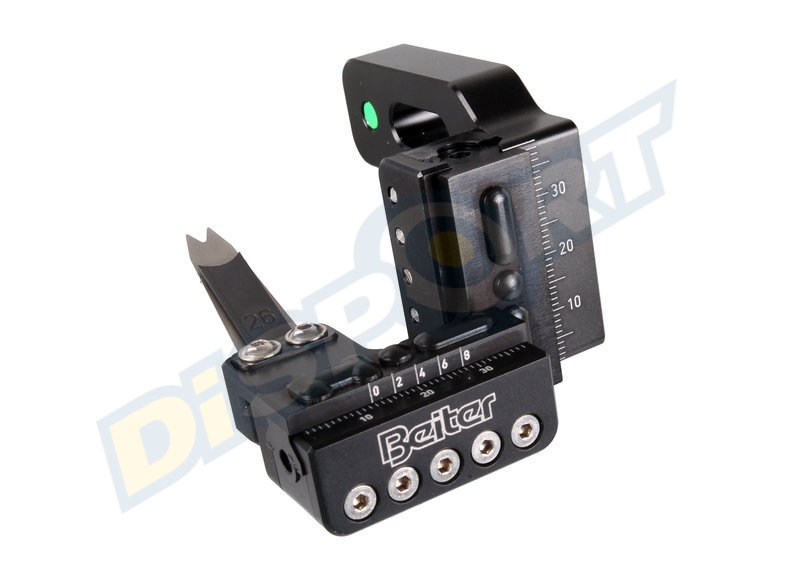 Precise adjustements 0,2 mm; horizontal and vertical movement without any retaining screw. Beiter used thermpolasts wherever possible to reduce weight, but still allowing as much stability as possible. Werner Beiter developed a revolutionary horizontal and vertical adjustment, which allows adjustments precise as 0,2mm. Supplied with different launcher sizes and thicknesses to fit various arrow diameters and weights.