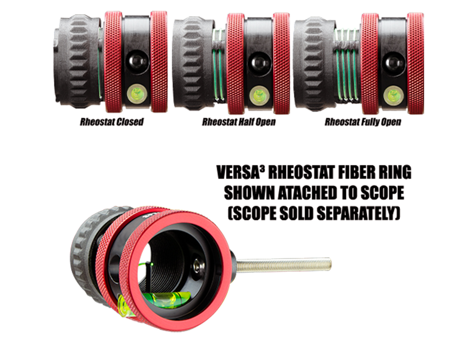 Rheostat Fiber Rings allows the user to adjust Glow Pin brightness for individual target presentations. Turn the cover to expose more fiber to increase pin brightness, cover up more fiber to reduce pin brightness! Rheostat Fiber Ring comes with green fiber installed, but also includes red and blue fiber.