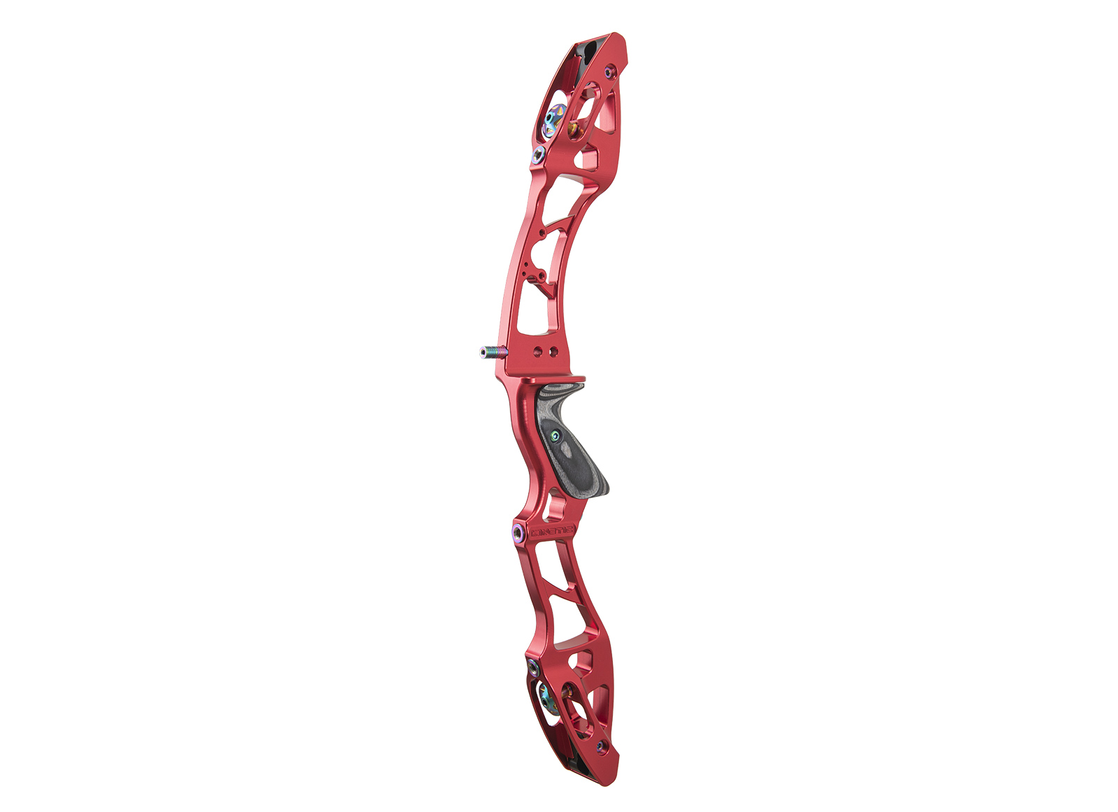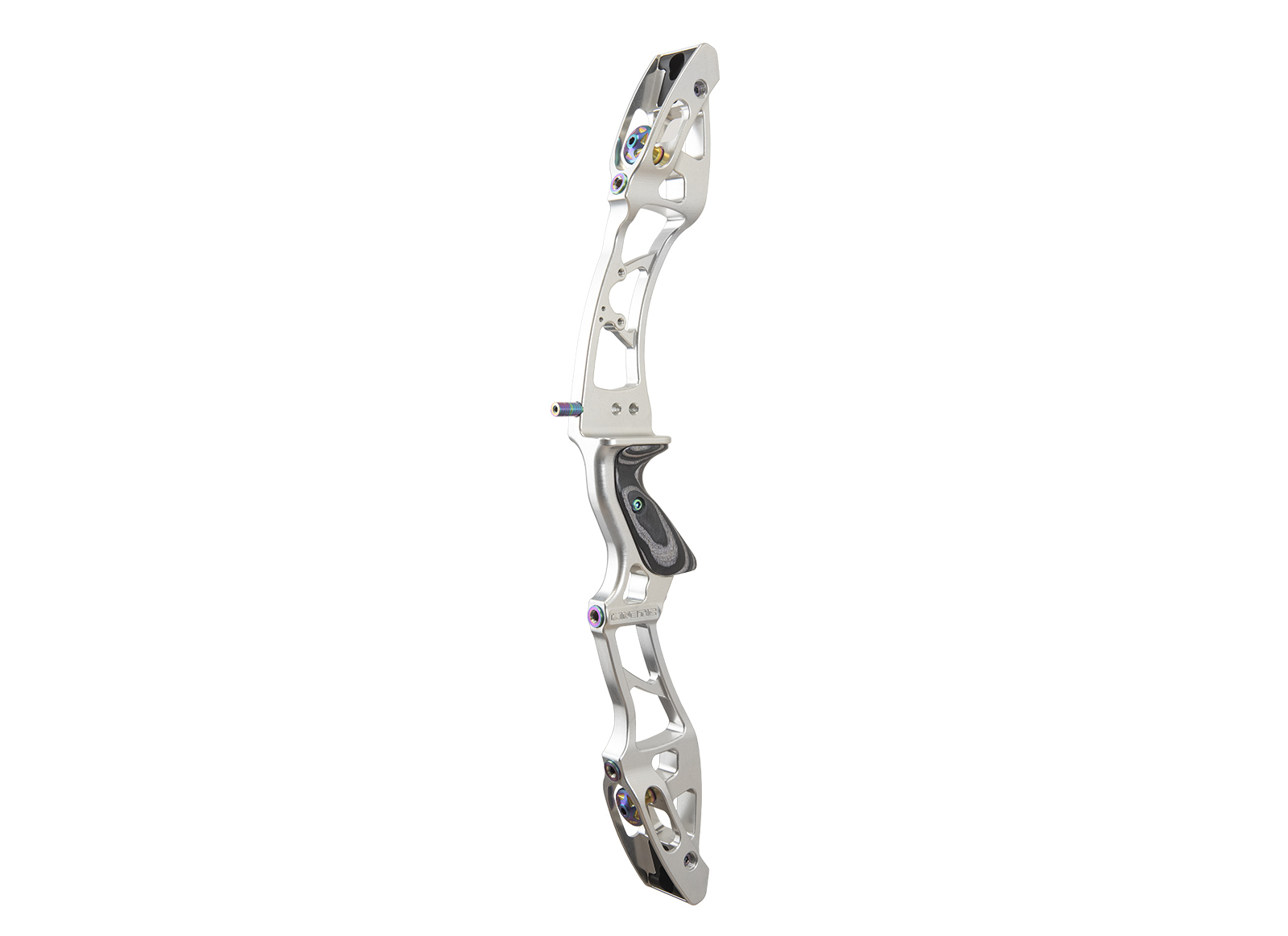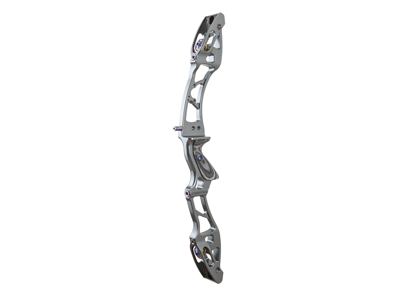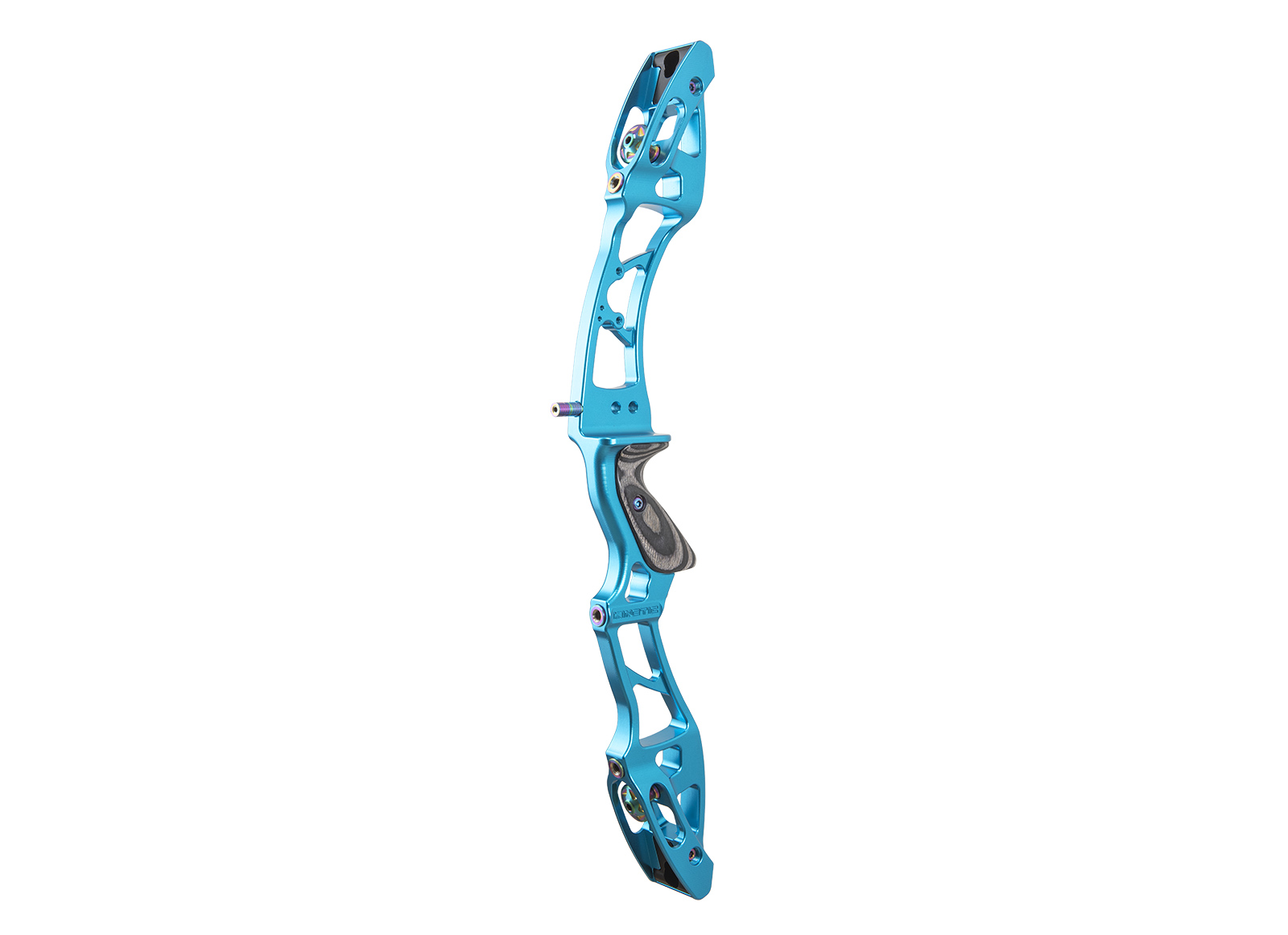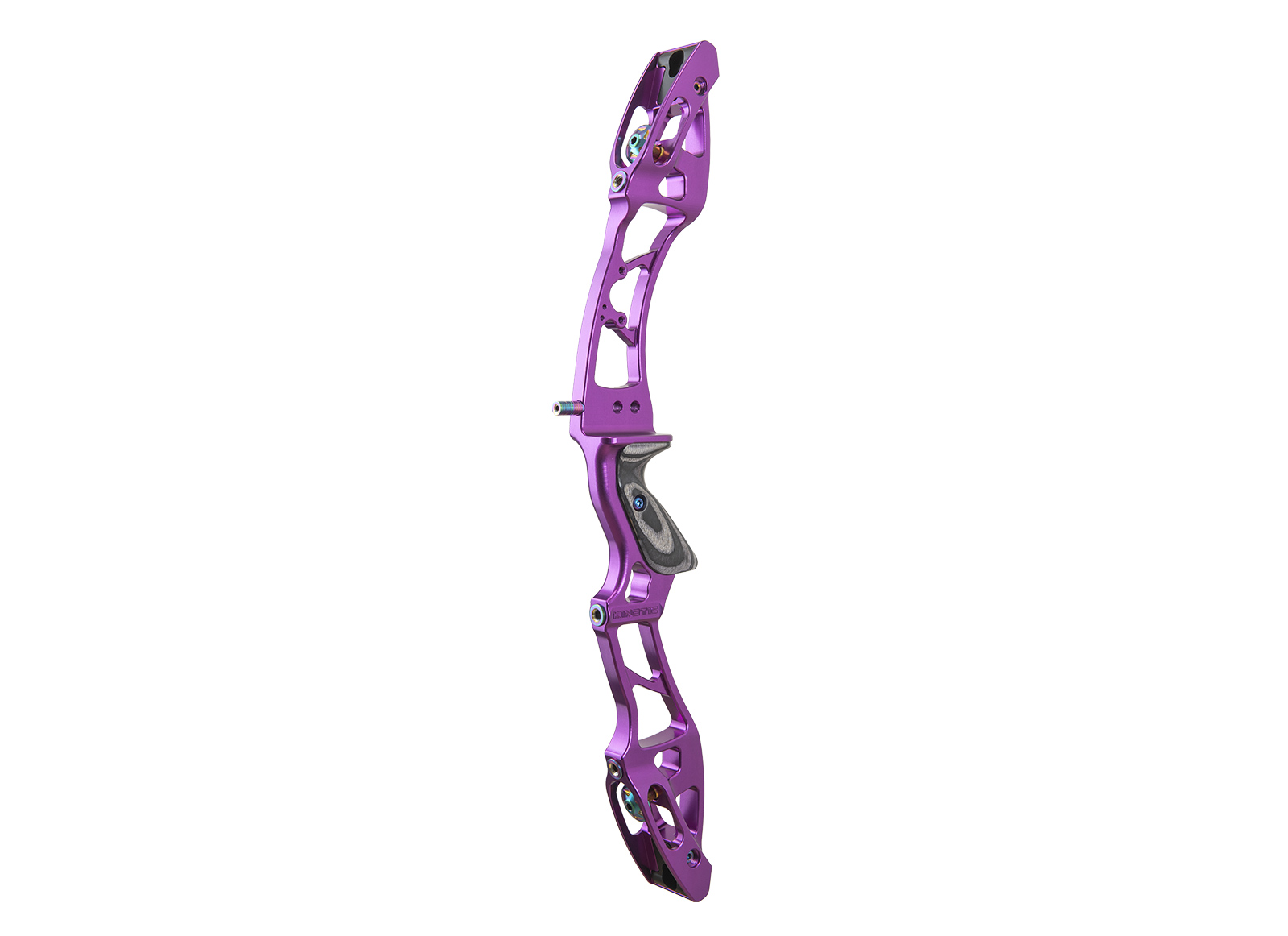 The Sovren is a CNC-machined ILF riser made from 6061 aluminum bar stock, weighing 1080g. The riser features a limb alignment system and a wooden grip. The riser is anodized in bright colors. The 23' version is suitable for those who want to make a 64'' overall length with 66'' nominal limbs.