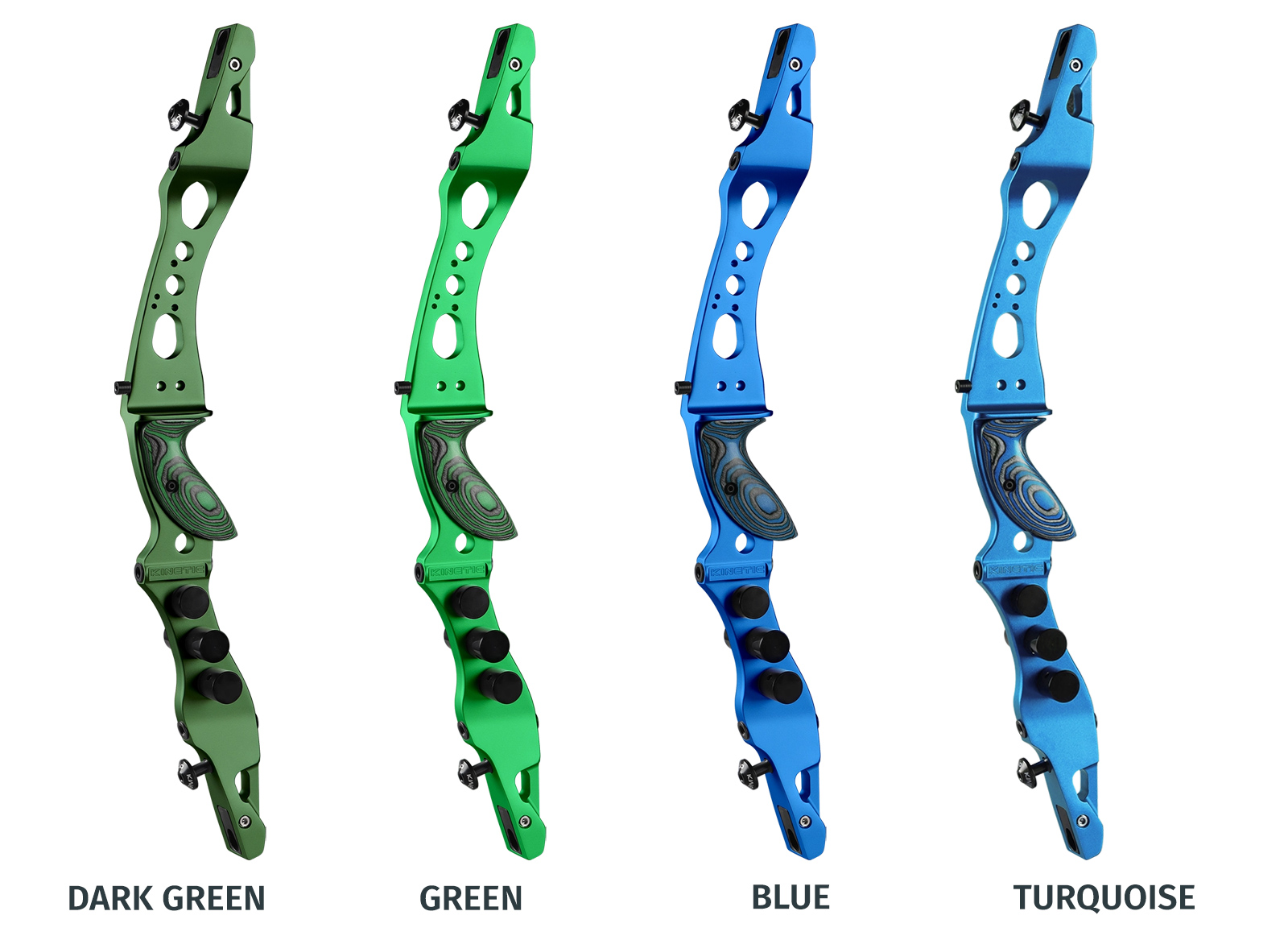 Vygo is the new Arco Nudo Riser by Kinetic. It includes 3 different weights (200-200-100 gr) which can also be installed together in the 3 holes corresponding to the riser. The color of the weights can be as shown in the photo or all black. Riser weight only 1,250 grams, aluminum construction material. Excellent wooden grip.