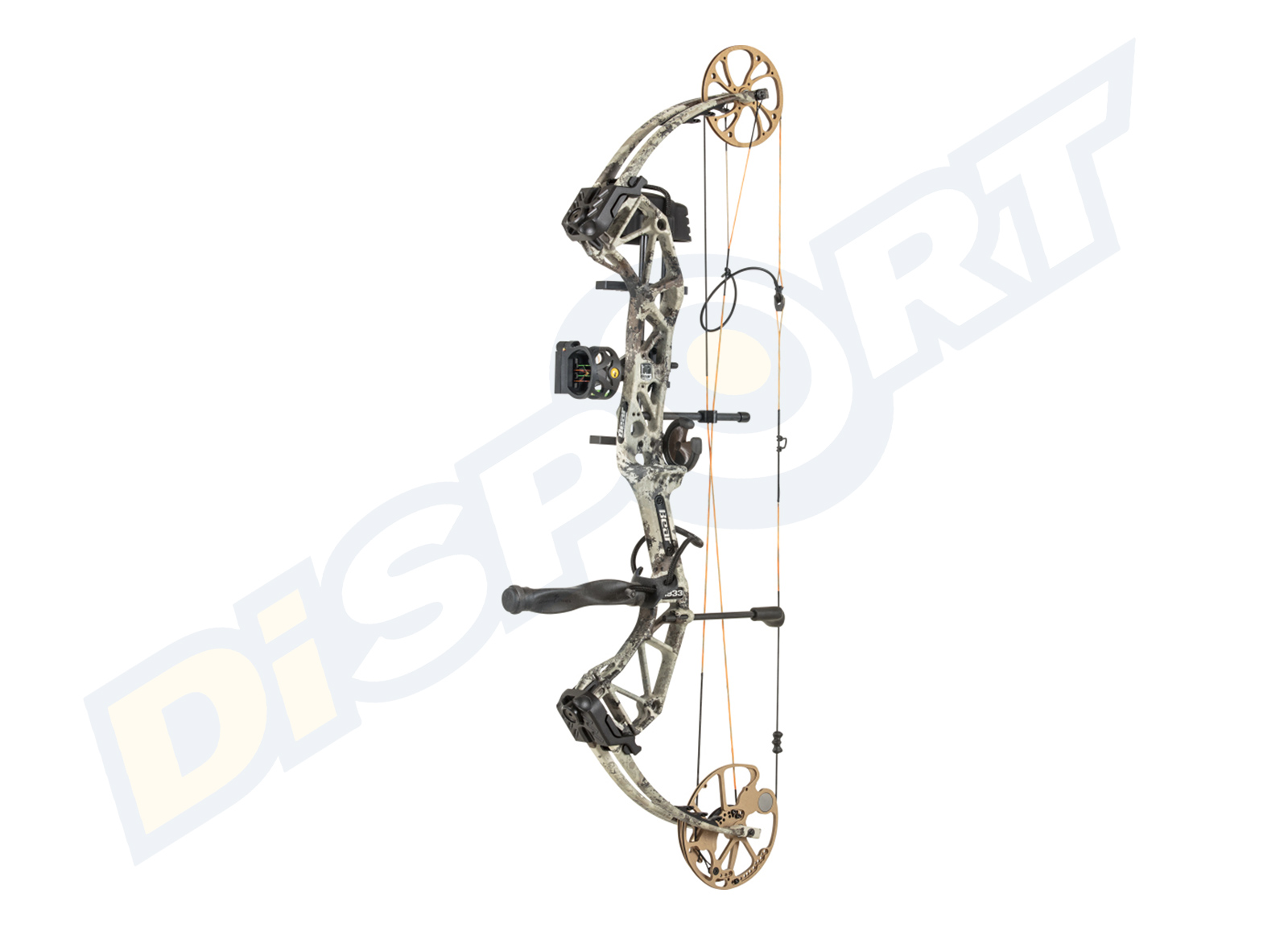 Il kit include: Mirino Throphy Ridge con 4 pin, Rest a biscotto, Stabilizzatore da caccia 6'', Faretra da caccia, Dragona, Peep e Loop.