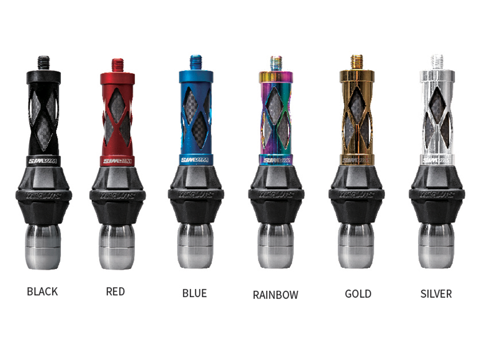 Damper con peso firmato Win&Win con un corpo interno di carbonio e quello esterno in alluminio. Ottimo per smorzare le vibrazioni e tenere sotto controllo la torsione dell’arco. Disponibile in diversi colori.
