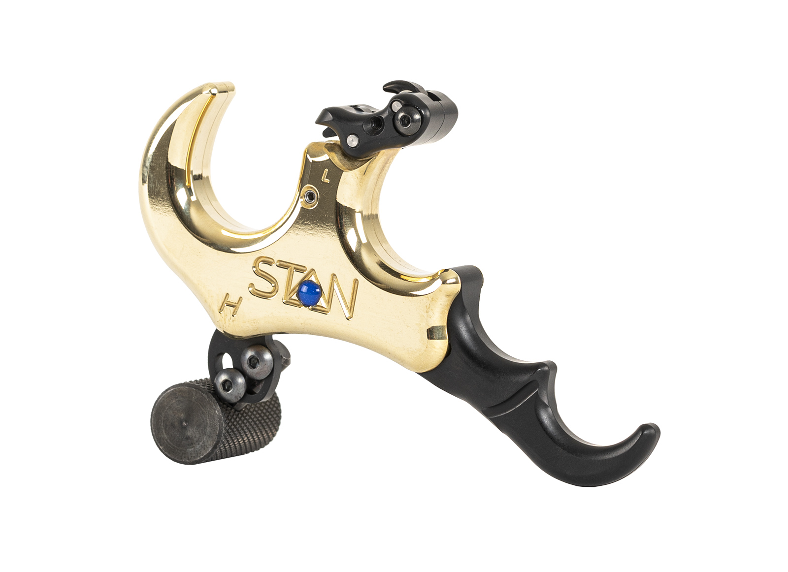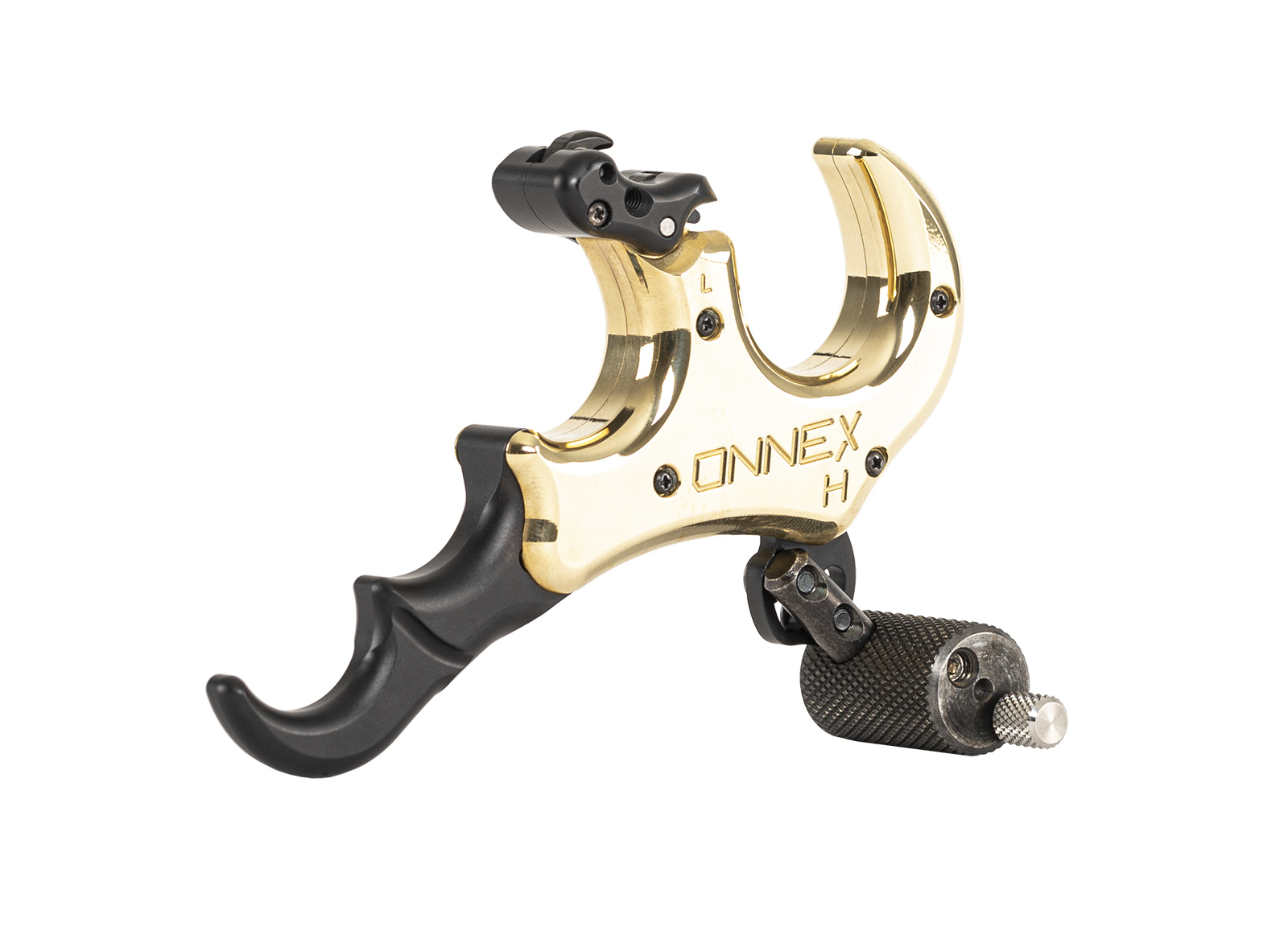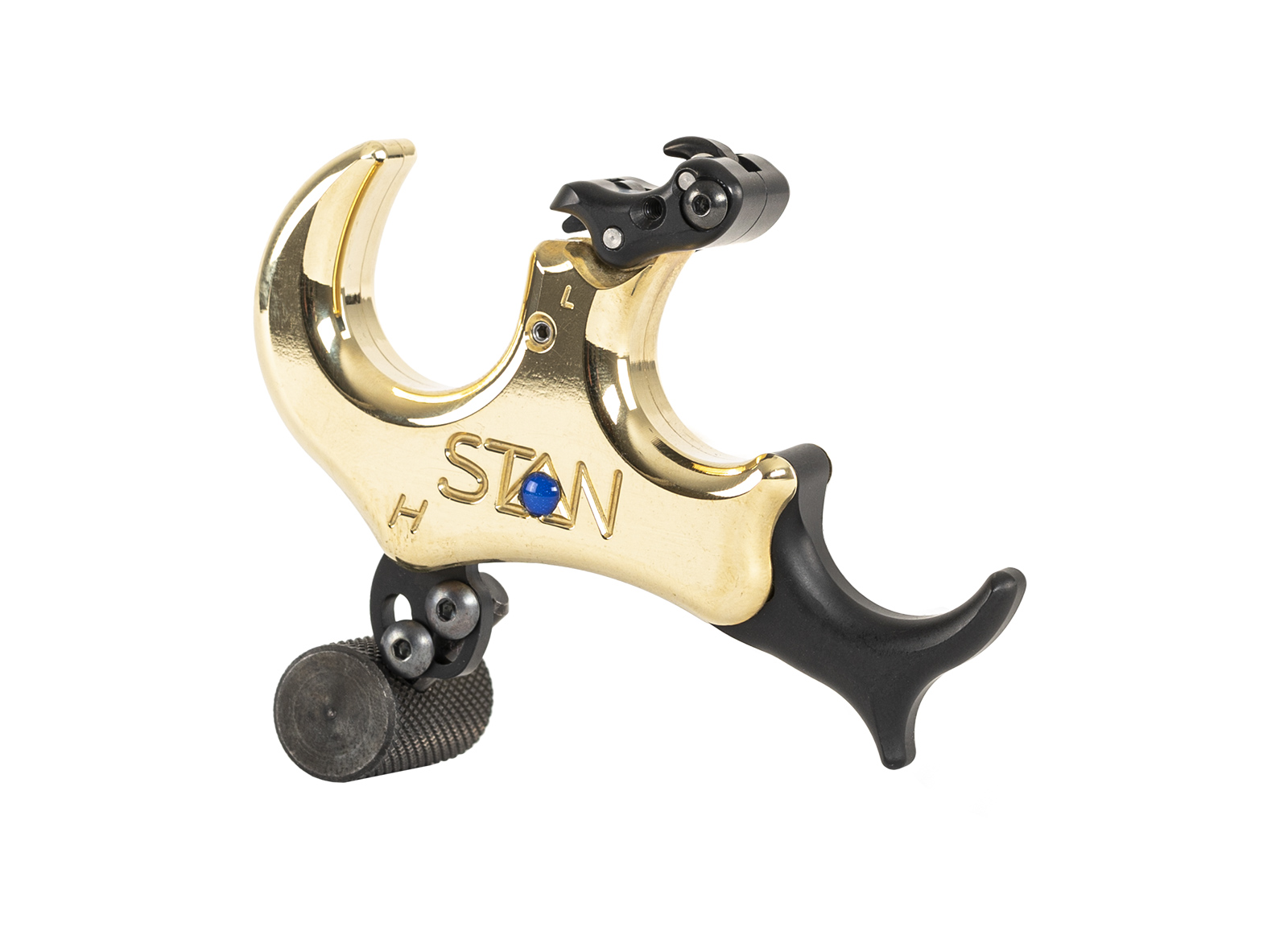 Stan Onnex a Rotazione (anche chiamato Stan Onnex Hinge Back Tension) è uno sgancio Back Tesion che si attiva grazie alla rotazione e al movimento back tension. Preciso nella regolazione con movimenti regolabili micrometricamente, facile da utilizzare grazie alla sicura da premere durante la trazione per evitare qualsiasi rilascio accidentale della freccia. Fornito di lunetta con clicker medio oppure ''no clicker'', estensione regolabile per il terzo e per il quarto dito, di pulsante standard o largo e di estensione per pulsante classica o corta. Questa versione in Ottone ha un classico maggiore, scelta ideale per lo sgancio a rotazione e per chi cerca un maggiore feeling nel rilascio.