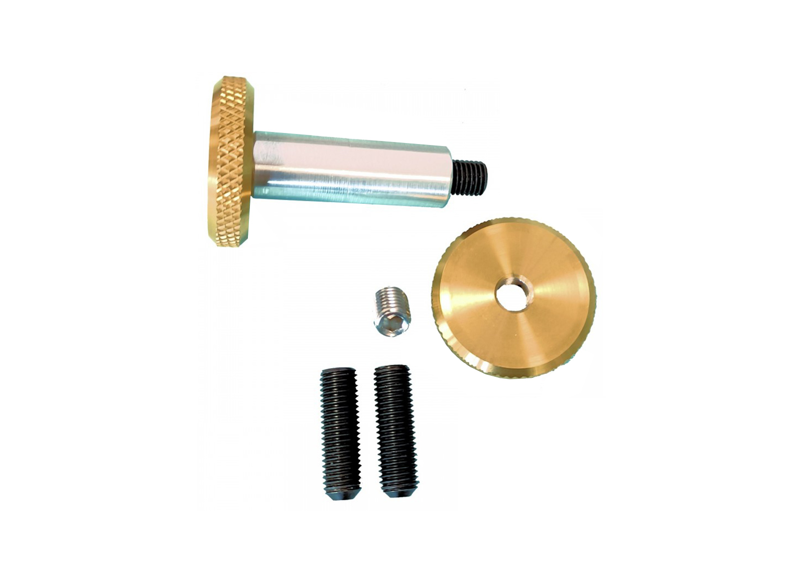 Il kit base 'The Wheels' comprende 1 albero rigido in alluminio, 2 perni filettati SS in tubo di plastica e 2 pesi a disco GSX-CW-01-GO.