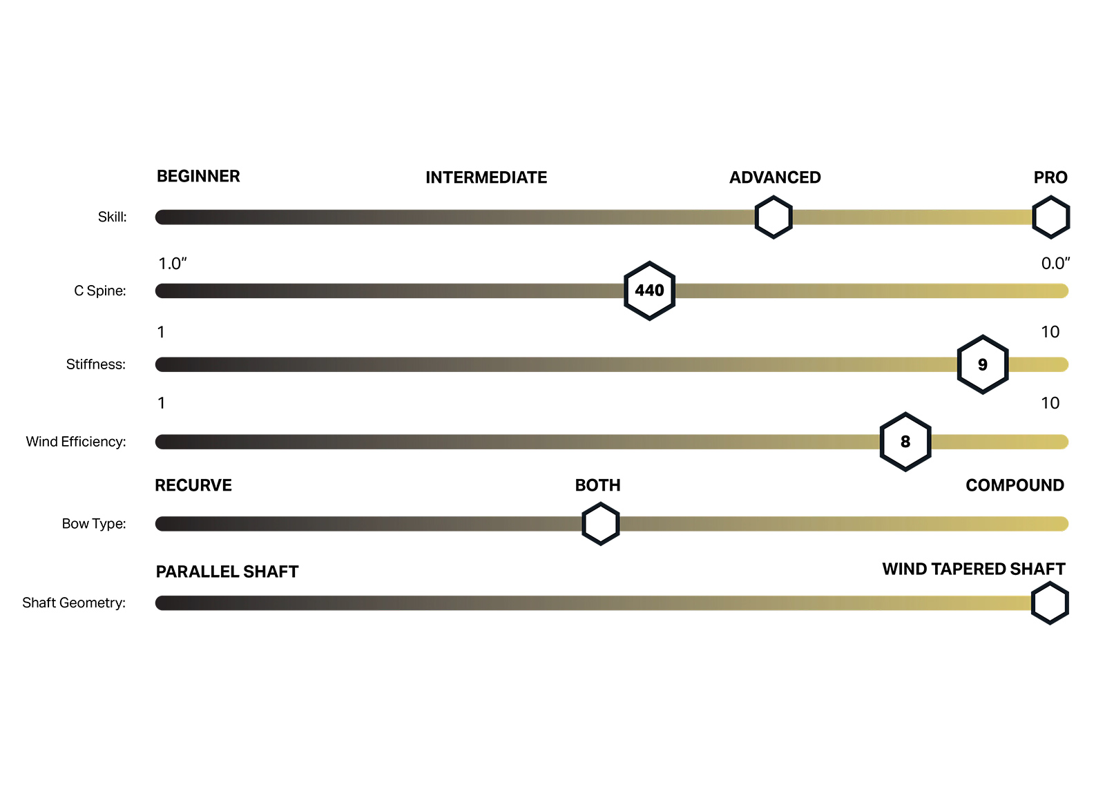Arco Compound: Perfetto se la tua priorità è l'efficienza al vento nelle gare outdoor e utilizzi un carico frontale entro le 25 oz. Offre una sensazione di stabilità estrema senza risultare eccessivamente rigido.