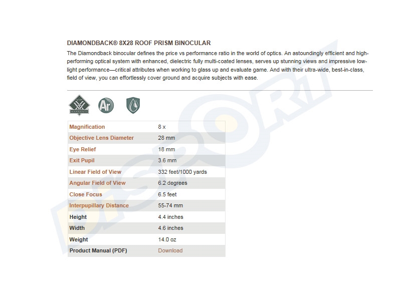 Il Diamondback ha ampio campo visivo e una grande manegevolezza ai vari ingrandimenti.