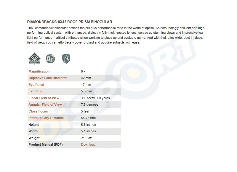 Il Diamondback ha ampio campo visivo e una grande manegevolezza ai vari ingrandimenti.