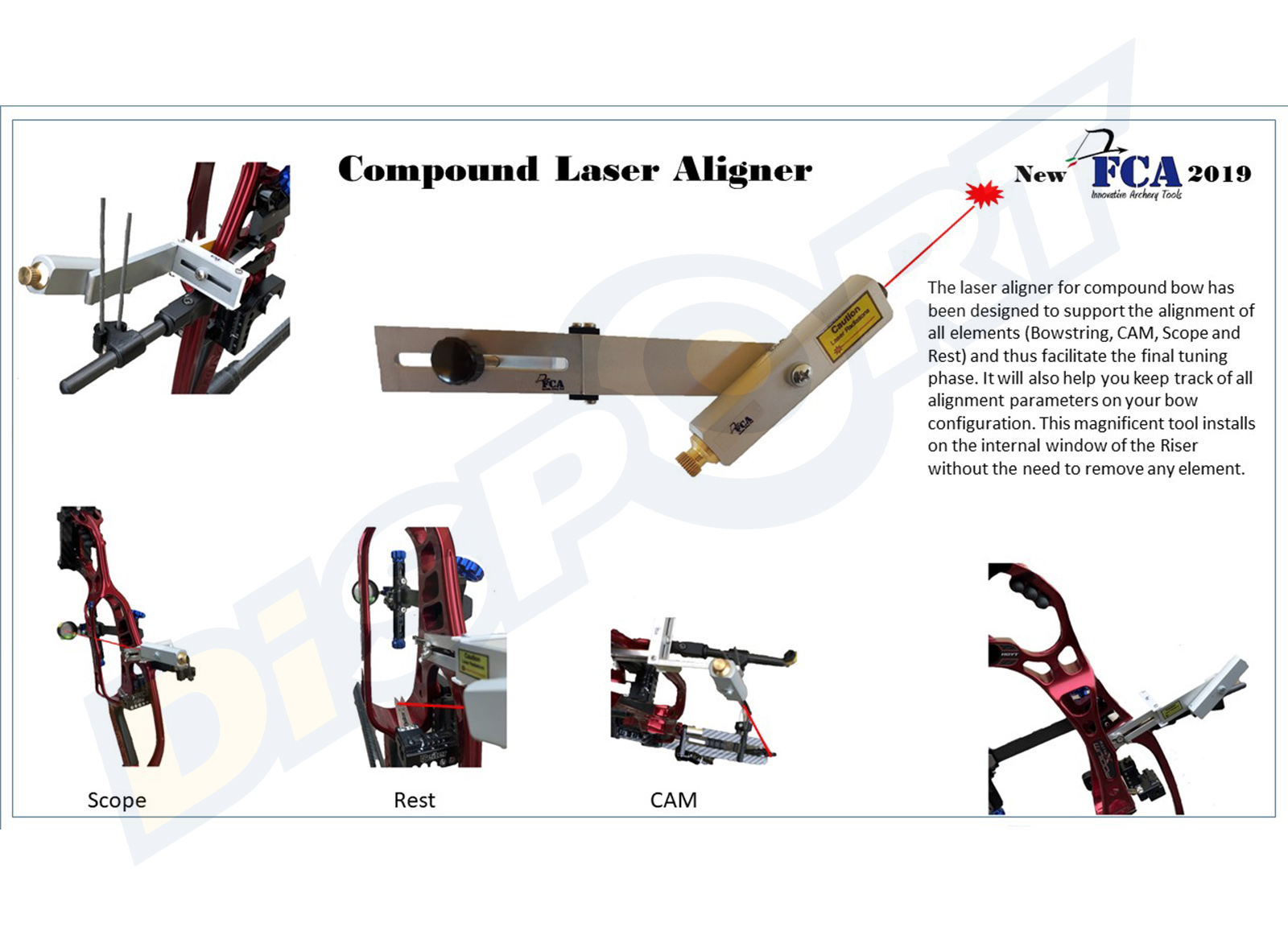Squadretta laser per allineare tutti gli elementi e facilitare la fase del tuning finale per archi compound.