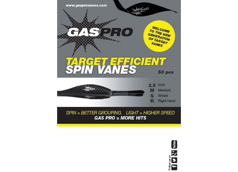 Per le olimpiadi di Londra 2012 nasce Gas Pro Target Efficient spin vanes, una 2.5'' basso profilo scudata che grazie all'efficienza del nuovo materiale usato anche nella nuova Recurve Efficient garantisce una performance ineguagliabile nel tiro alla targa (fino a 90mt). Ideale per compound e per ricurvi è stata scelta anche da Natalia Valeeva (testimonial Disney nel film Brave oltre che pluri campionessa Mondiale ed Europea indoor) e Oscar de Pellegrin, portabandiera per la nazionale Italiana alle olimpiadi di Londra 2012.