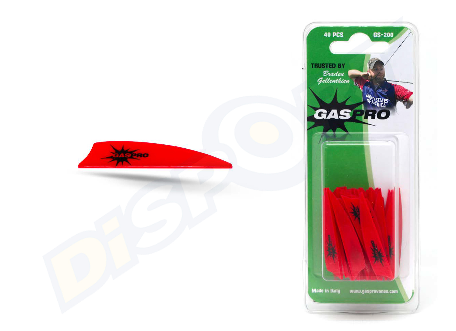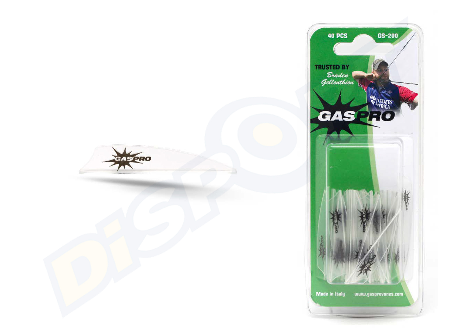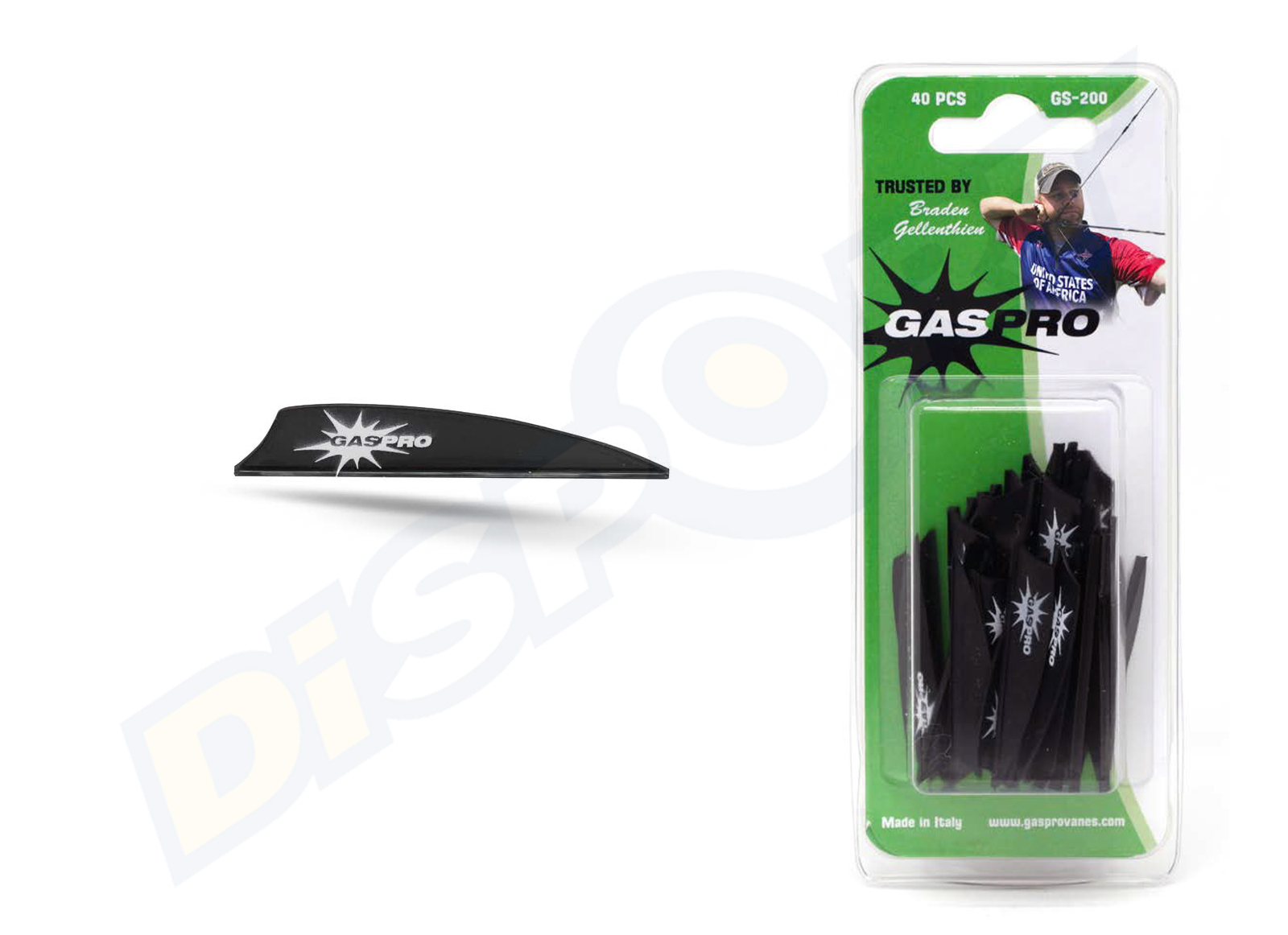 Gas Pro Vanes GS-200 Trusted by Braden Gellenthien series. Quando apri una confezione da 40 alette, dal primo momento che ne tocchi una, sai esattamente che hai scelto il meglio. Perchè? Hai la stessa qualità, le stesse performance e la stessa aletta che utilizza il #1 al mondo World Cup a 50mt Compound Man Braden Gellenthien. Se tiri con l'arco compound a 50 metri, se ti piacciono i percorsi Field e 3D o se semplicemente ami il tiro con l'arco nel giardino di casa, sappiamo che ti meriti comunque sempre il meglio. GS-200 è l'aletta più venduta della gamma Gas Pro in plastica per outdoor, prima scelta anche per tutti i nostri tiratori Pro Staff Gas Pro. Scegli la miglior qualità e performance di Gas Pro, Scegli GS-200
