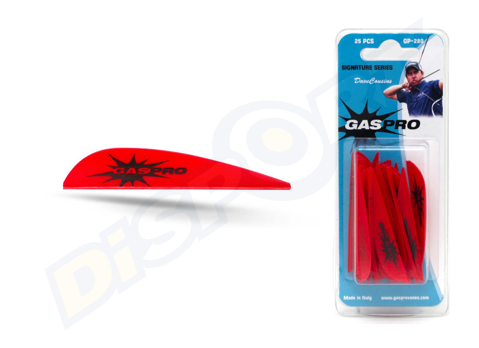 Il nostro Team Gas Pro ha lavorato duro con Dave Cousins per realizzare qualcosa di semplice ed estremamente efficace. La GP-280 è un'aletta Compound da utilizzare in Indoor, come anche nel Field, 3D e a Caccia. Suggeriamo l'utilizzo con aste di medio e largo diametro per ottenere il miglior volo della freccia possibile. La Gas Pro GP-280 è disegnata per ottenere la massima stabilità e velocità combinata assieme, scelta perfetta per aste in Carbonio e Alluminio. Scegli la GP-280 come Dave Cousins, l'unico arciere compound al mondo ad avere vinto tutti e 4 i titoli mondiali nel tiro con l'arco (mondiale Targa, mondiale Field, Mondiale 3D, Mondiale Indoor).