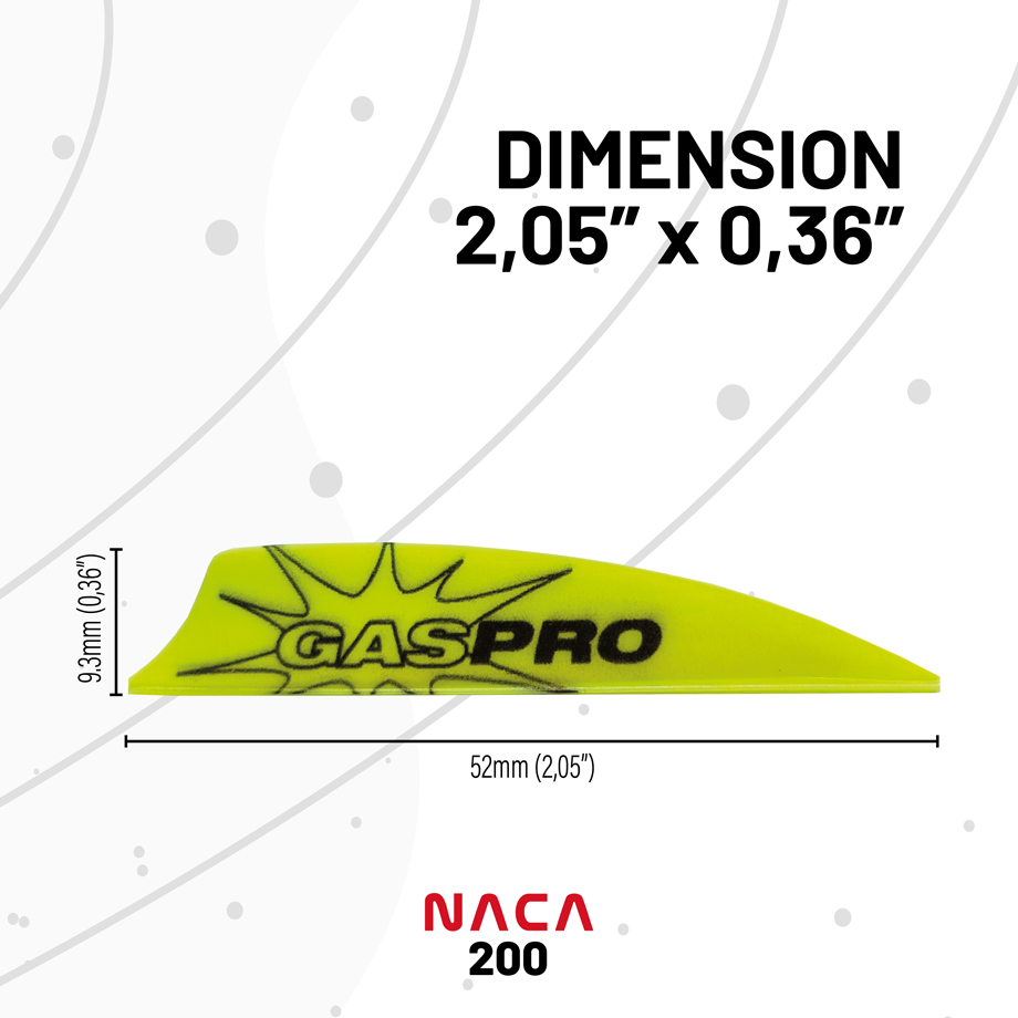 Le Gas Pro Vanes NACA cambieranno le prestazioni nel settore delle alette per il tiro con l'arco! Anni di studi hanno permesso al team Gas Pro di applicare la forma del profilo alare NACA in una aletta per tiro con l'arco, di ottenere una rotazione più rapida della freccia e creare l' effetto giroscopico per migliorare la stabilità della freccia senza perdere energia o velocità.