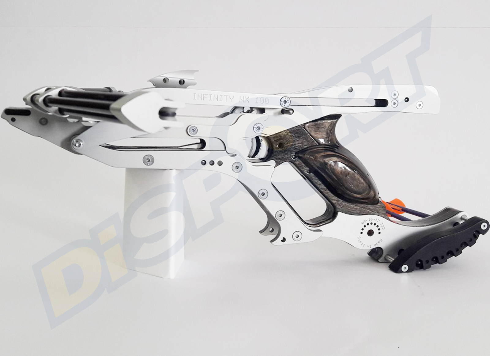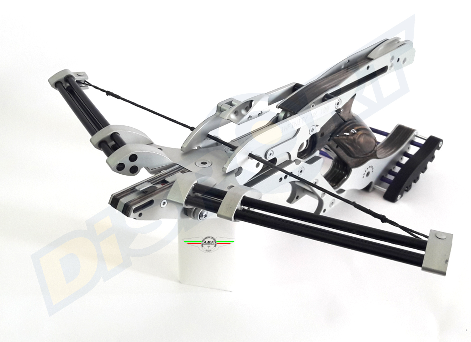 Pistola Balestra realizzata in Italia dalla AMF Engineering, precisa e veloce da ricaricare (il sistema di caricamento a leva include due magneti, si sconsiglia a chi utilizza il Pacemaker o simili). La potenza di 60#, utilizza frecce dedicate e realizzate appositamente. La confezione contiene 5 frecce, olio lubrificante, grasso per il meccanismo di caricamento veloce e un ottimo manuale di istruzioni in Italiano.