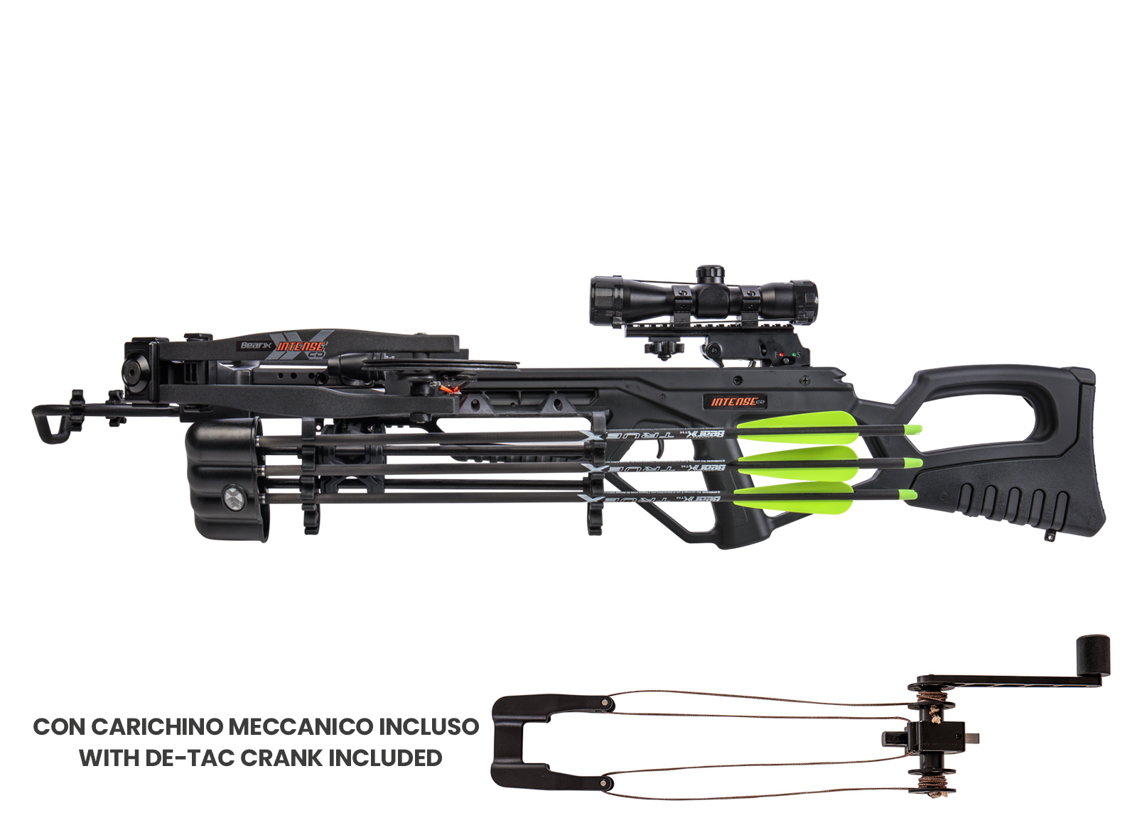 Completa di tutto ciò di cui hai bisogno per uscire a tirare già da subito, la Balestra Bear X Intense CD offre prestazioni incredibilmente potenti in un formato compatto. Disponibile in Shadow Black, il pacchetto include: