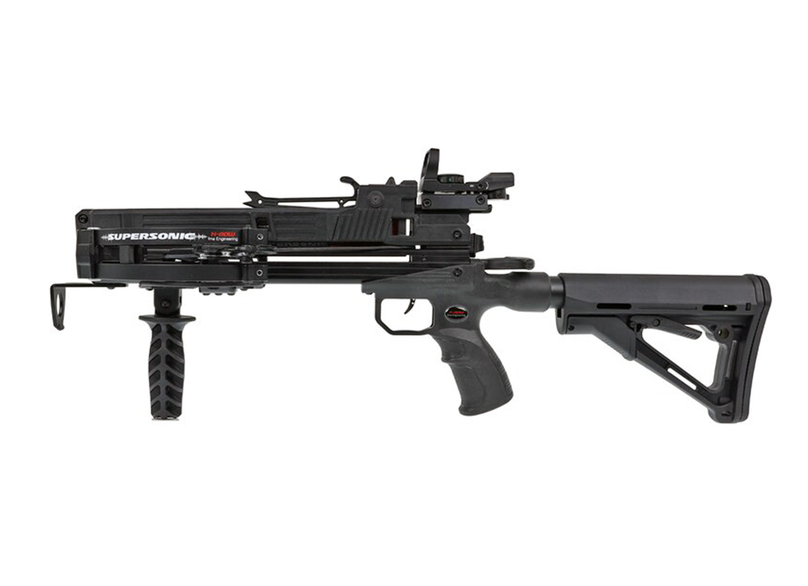 Può contenere fino a sei dardi, che vengono ricaricati in modo completamente automatico e consentono una rapida sequenza di tiro. Subito dopo l'armamento, il dardo successivo cade sulla slitta ed è pronto per essere sparato. Come speciale misura di sicurezza, il caricatore si blocca dopo l'ultimo colpo e non permette alla balestra di essere nuovamente armata. In questo modo non solo il tiratore sa che il caricatore è vuoto, ma si evita anche che un colpo a vuoto venga sparato involontariamente. Naturalmente, il caricatore è dotato anche di una guida Picatinny integrata, che consente il montaggio di qualsiasi cannocchiale standard o Red Dot.