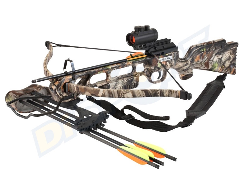 Ottima balestra, potenza 175 libbre, di serie gli accessori da foto, frecce incluse. Specifiche: potenza 175lbs; velocità 265 fps (a seconda del peso del dardo); peso 7lbs; larghezza 27''; lunghezza 35''; sicura automatica quando si incocca.