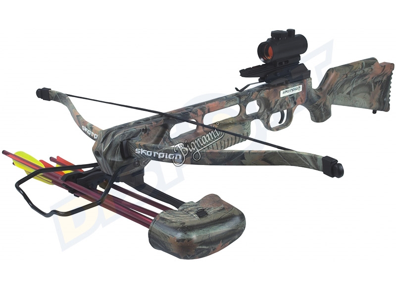 Balestra ad archetto in grado di sviluppare una potenza di 175#. Fornita di dardi e punto di mira come da foto.