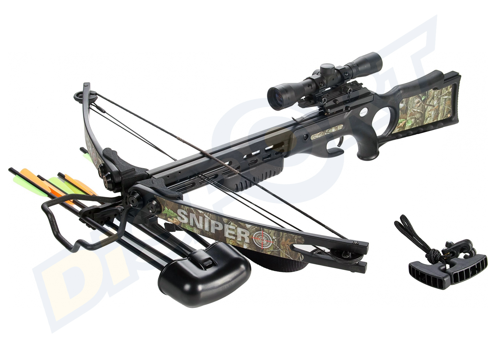 La prima balestra Skorpion XBC 150 è l'ideale per iniziare in questo fantastico mondo del tiro con la balestra! La ponteza è 150 libbre, ottima per tiri a breve ma anche a lunga distanza. All'interno della scatola, tutto l'occorrente: Ottica con ingrandimento 4x32, faretra porta frecce, 3 frecce in alluminio semplici e il carichino.