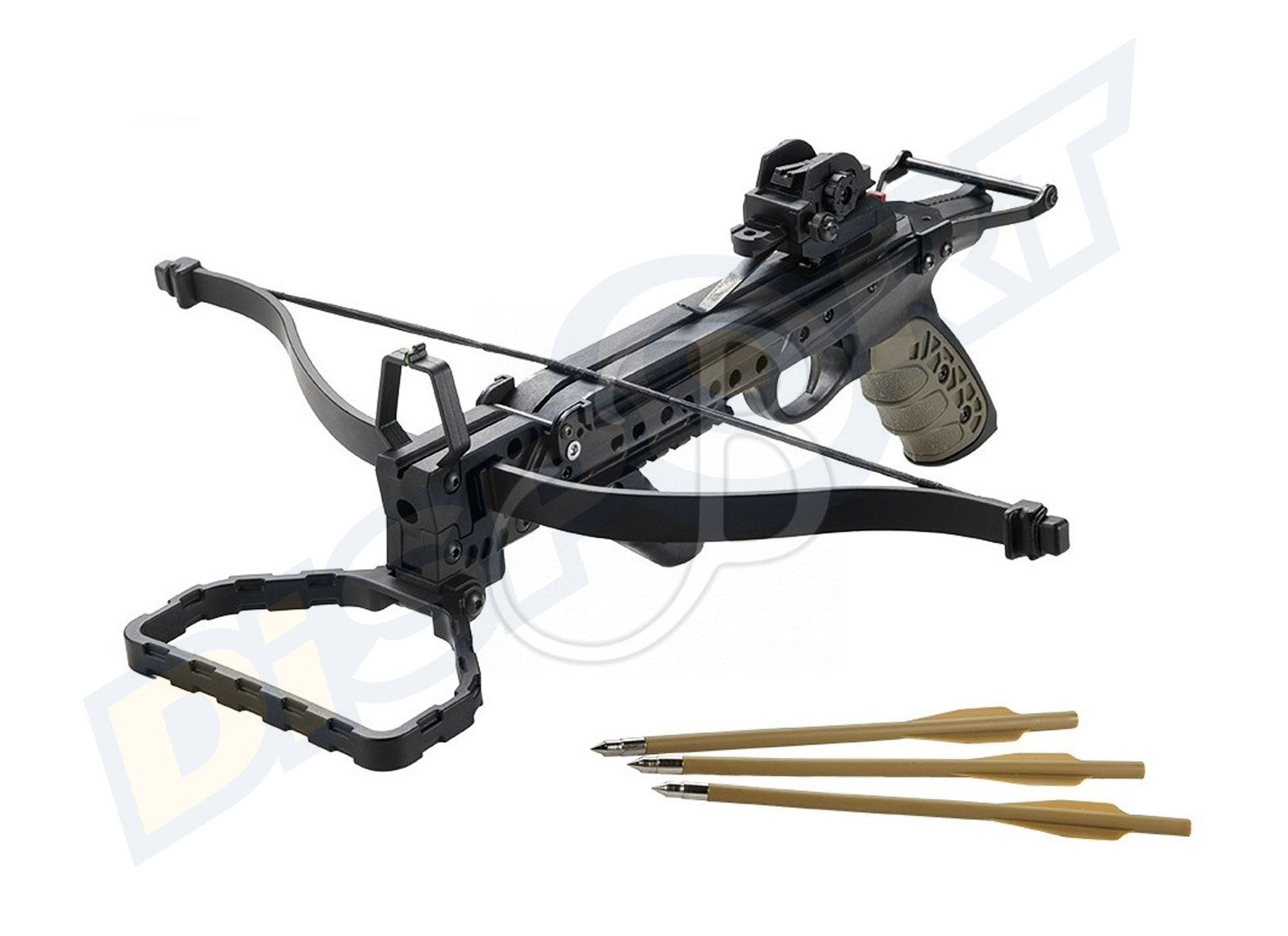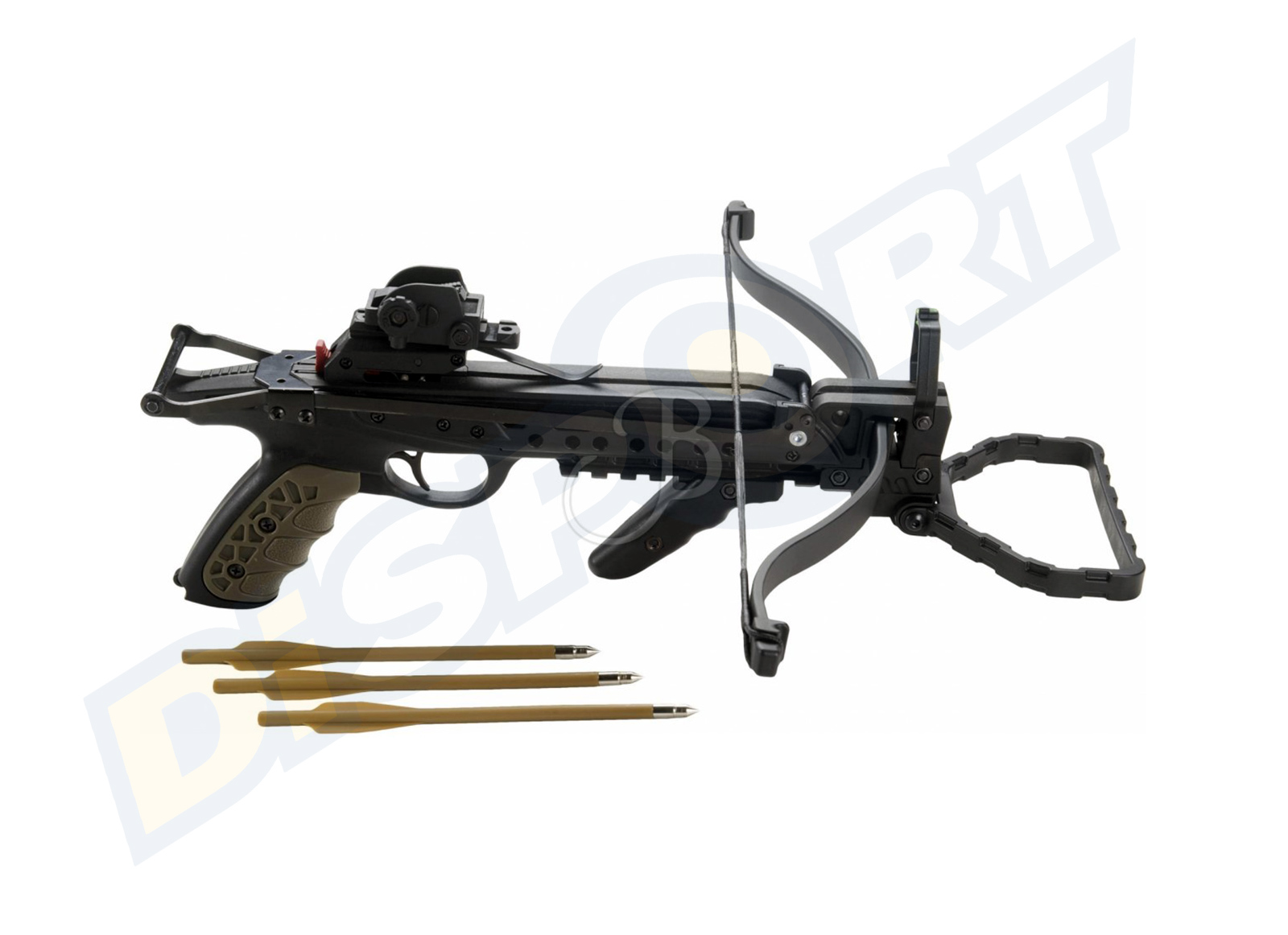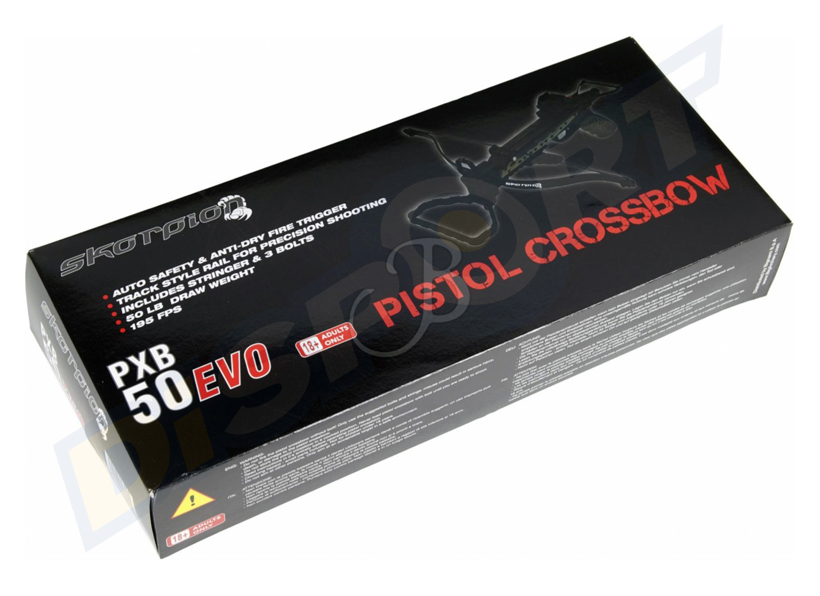 La nuova pistola balestra Skoprion PXB50 EVO package si presenta con un design compatto e rivisitato rispetto alla pistola balestra Skorpion PXB 80 per rendere ancora più semplice e veloce il caricamento. Fornita con tre dardi. Potenza 50 libbre. Velocità di 195fps. Peso 630 grammi circa.
